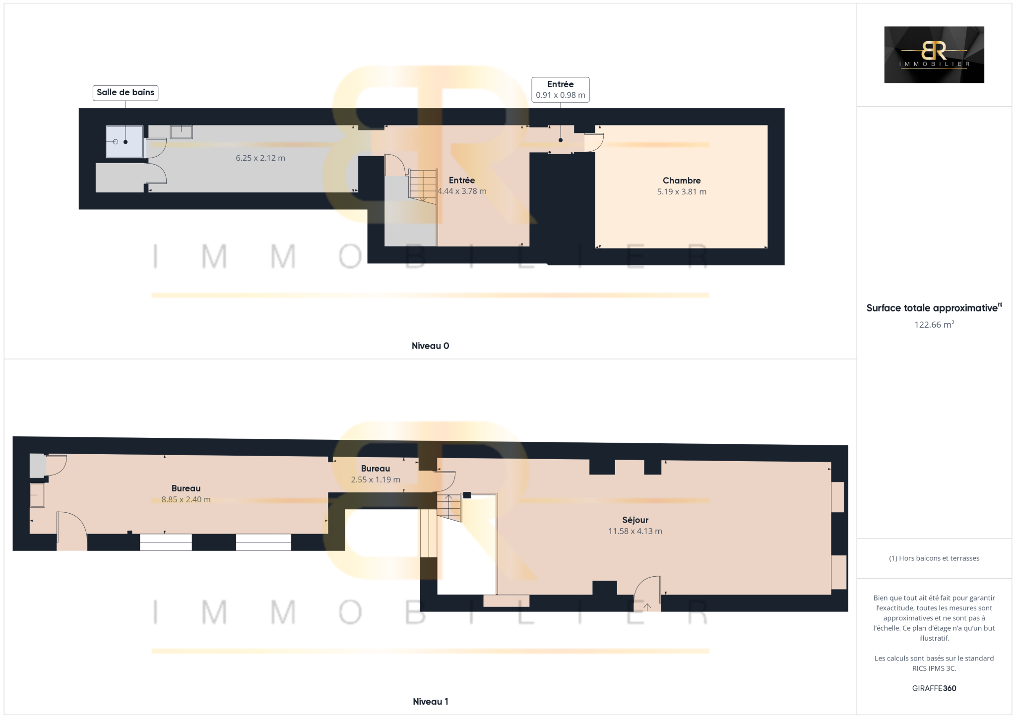 Au Rez-de-chaussée : 2 locaux pouvant être réunis pour former un espace commun, totalisant 42 m² avec une HAUTEUR SOUS PLAFOND DE 3,44M, ainsi qu'un espace supplémentaire acceuillant un bureau indépendant de 25 m².