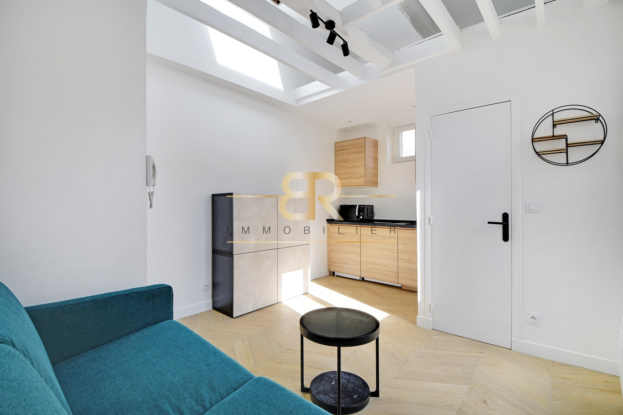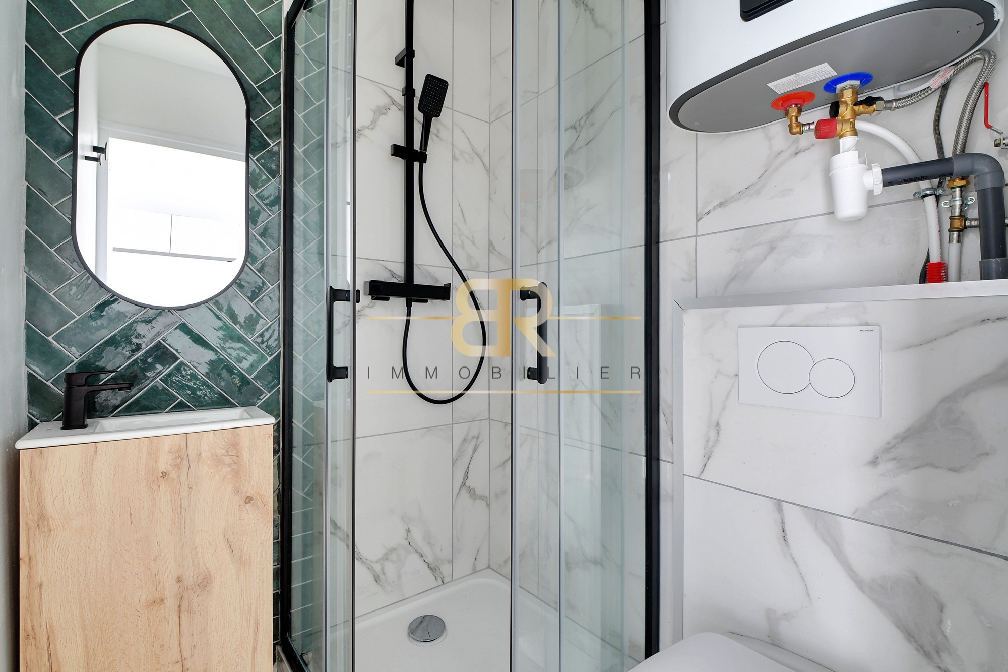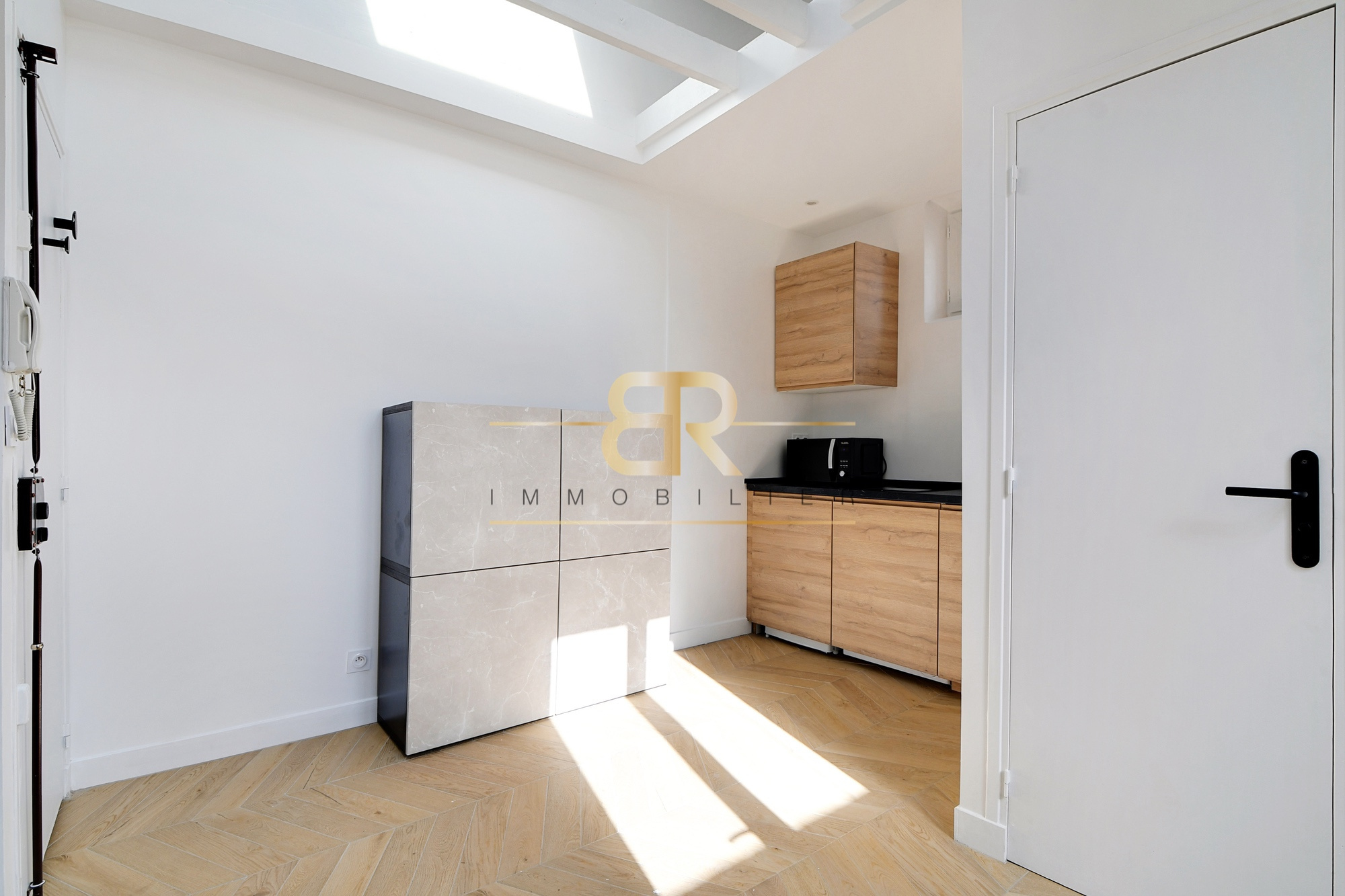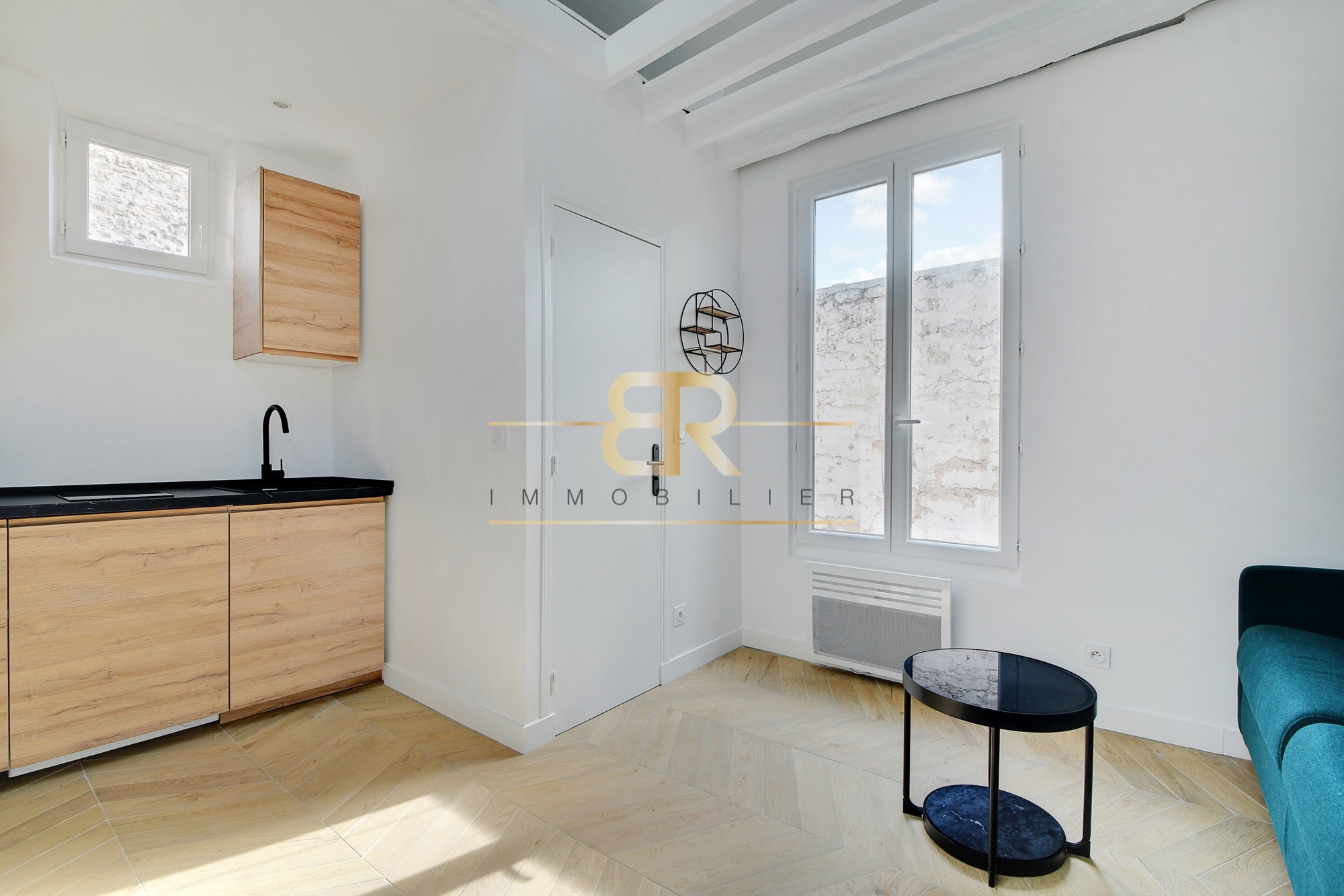 MARCADET POISSONNIERS - À seulement 200m du métro et baigné d'une lumière abondante grâce à ses trois fenêtres, dont un Velux, ce studio est idéalement exposé plein sud. Situé au 2ème et DERNIER étage d'un immeuble dont les parties communes ont été rénovées il y a 2 ans, ce joyau de 15 m2 loi Carrez a été entièrement refait à neuf en 2023 avec des matériaux de haute qualité. Au cours de cette rénovation, une attention particulière a été portée à l'isolation, tant des combles que des murs, garantissant un confort optimal.