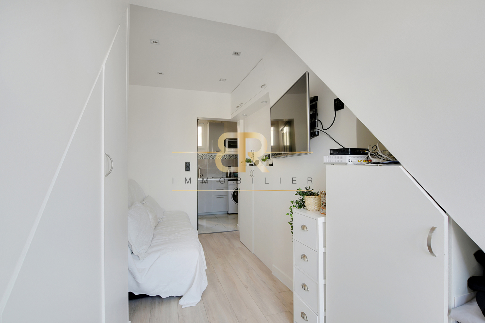 Le Cabinet BR Immobilier vous propose ce SUPERBE STUDIO au 6e et DERNIER ÉTAGE avec ASCENSEUR d'un immeuble ANCIEN de très bonne facture au coeur du XIe arrondissement. Il se compose : d'une ENTREÉ, une PIÈCE À VIVRE avec de nombreux rangements intégrés, d'une CUISINE DINATOIRE AMÉNAGÉE ET ÉQUIPÉE ainsi que d'une SALLE D'EAU avec WC sanibroyeur. Cet appartement a été entièrement rénové avec des matériaux de qualité, il est en PARFAIT ÉTAT. Emplacement idéal, faibles charges. Idéal pied-à-terre et primo-accédants. À visiter sans tarder!!!