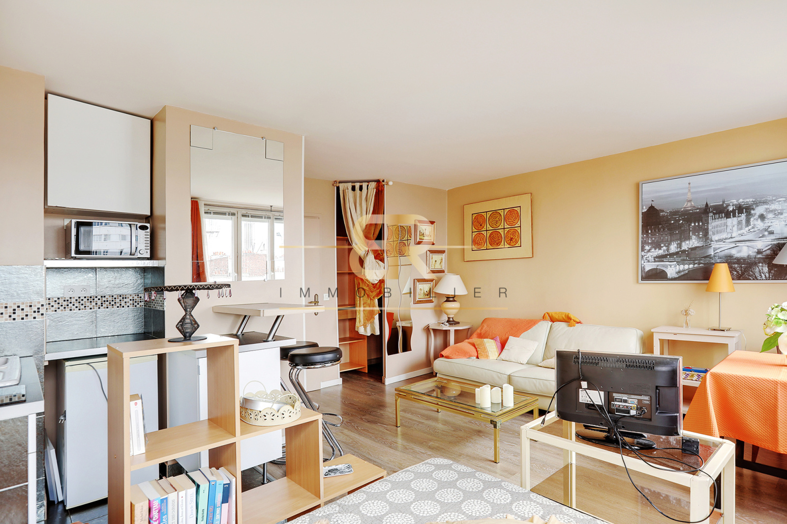 Ce bien se compose d'une entrée desservant une grande pièce à vivre avec cuisine US équipée et une salle d'eau avec WC. Il est exposé plein OUEST avec vue sur le JARDIN et sans vis à vis vous offrant le plus grand CALME.