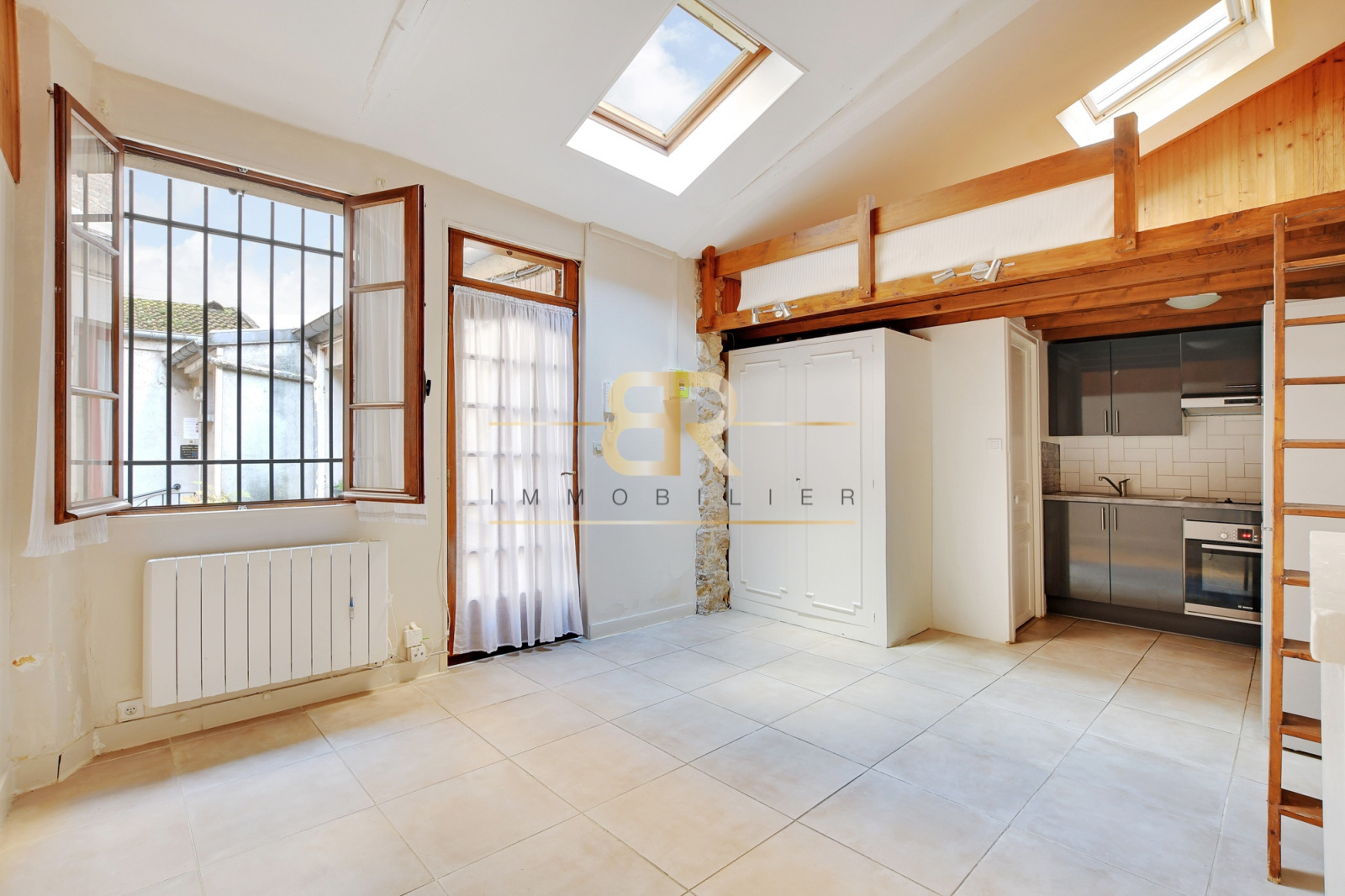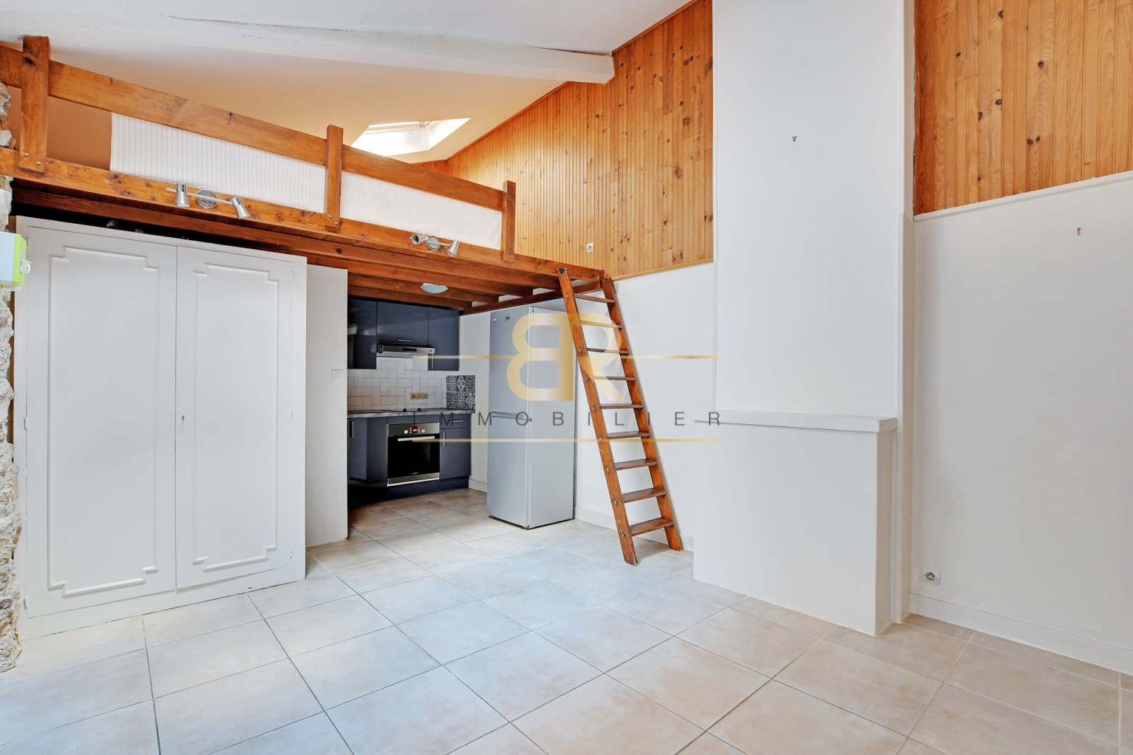 Ce bien, doté d'une belle hauteur sous plafond, offre une pièce de vie avec cuisine ouverte, un véritable espace nuit en mezzanine, une salle d'eau avec WC, ainsi qu'une cave.