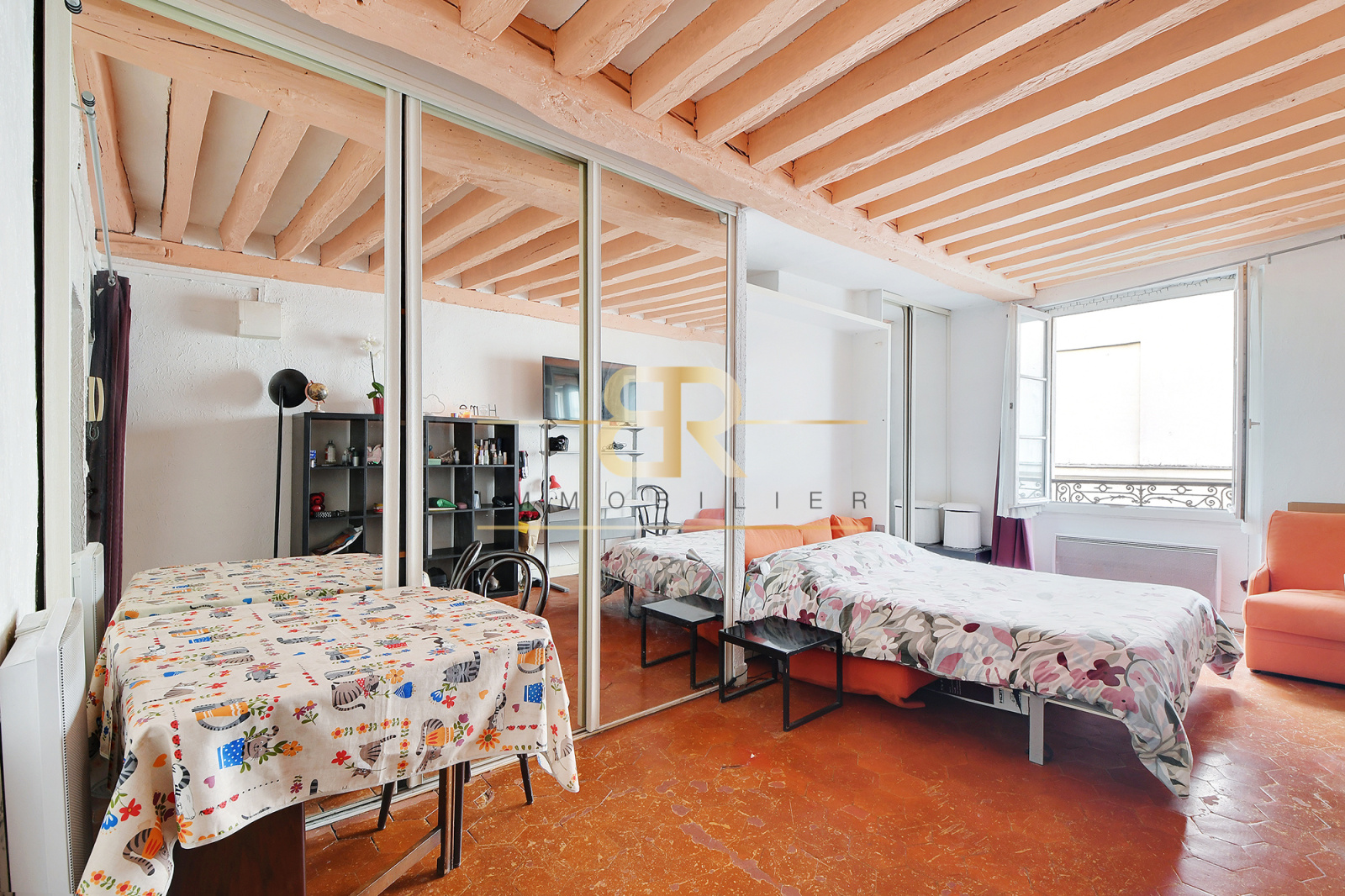 COUP DE CŒUR ! A deux minutes à pied du MÉTRO ARTS ET MÉTIERS (lignes 3 et 11) en plein cœur du HAUT MARAIS, le Cabinet BR IMMOBILIER vous propose ce BEAU STUDIO DE 27,5 m2 en bon état, au 4ème étage sans ascenseur. Il se compose d'une GRANDE PIÈCE DE VIE lumineuse et calme, d'un petit couloir qui dessert une SALLE DE BAIN, une CUISINE FERMÉE et ÉQUIPÉE, et des WC indépendants. Situé dans un immeuble ancien donnant sur une petite rue calme typique du Marais, ce studio bénéficie d'une localisation ultra centrale tout proche du joli square du Temple, de la Mairie du IIIème arrondissement, et à 5 minutes à pied de la Place de la Républque. Nombreux commerces de bouche (marché des Enfants Rouges + marché de la rue de Bretagne), bars, restaurants et galeries d'art à quelques minutes de marche. DPE F / IDÉAL JEUNE COUPLE, ÉTUDIANT ou INVESTISSEUR. A vister rapidement !