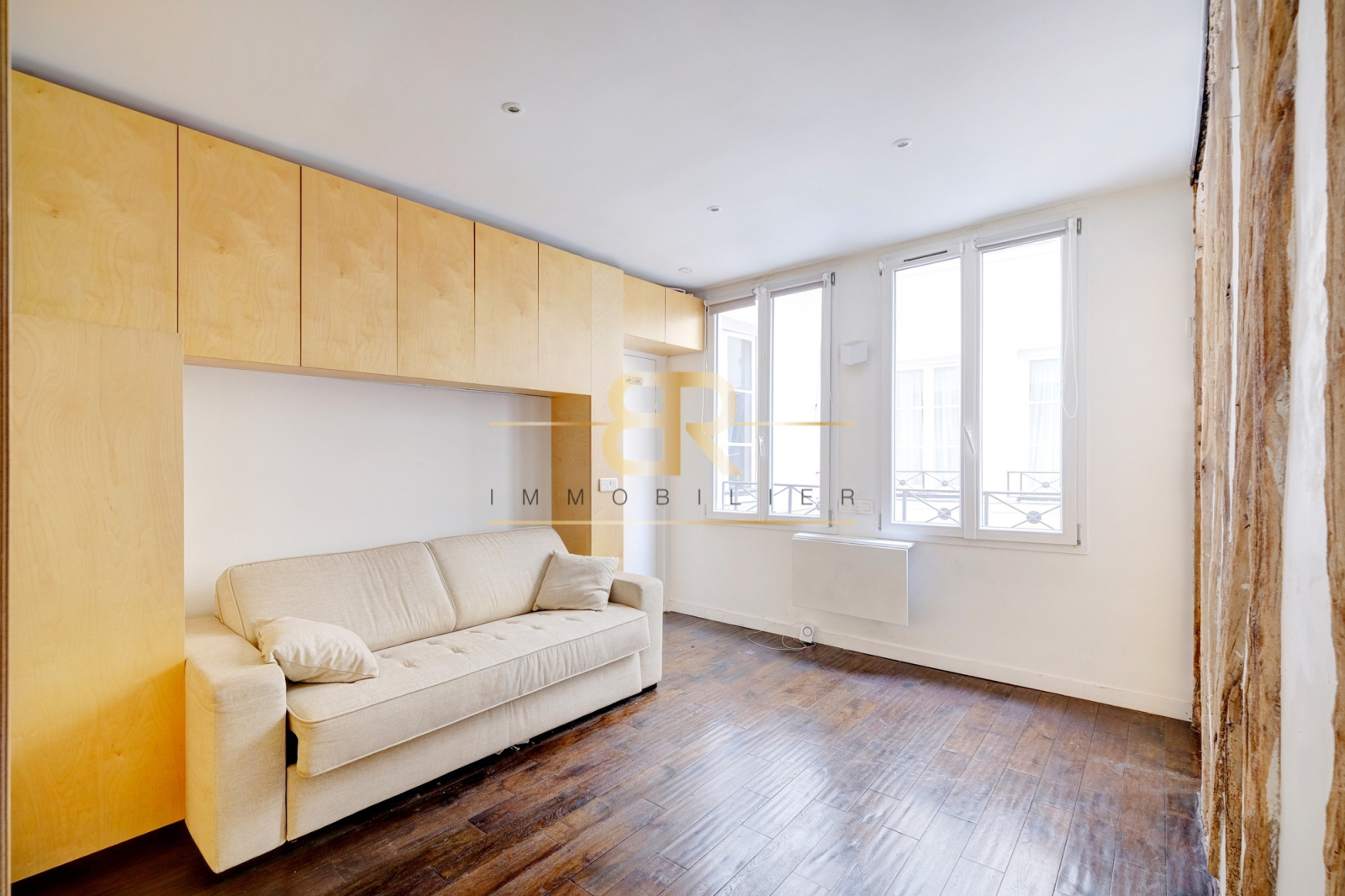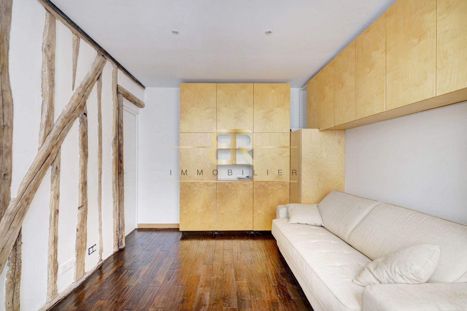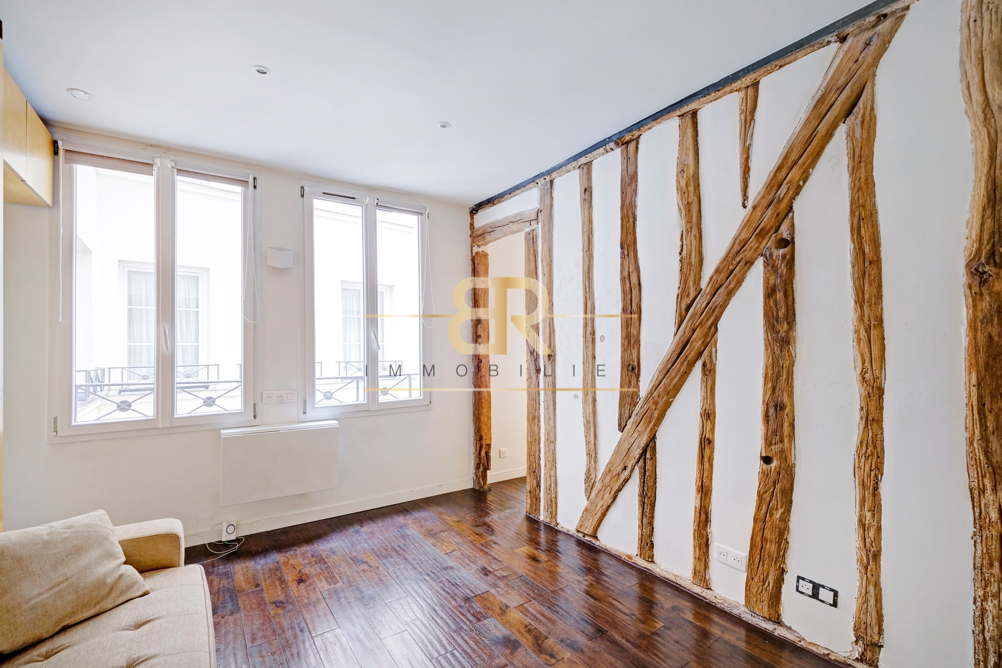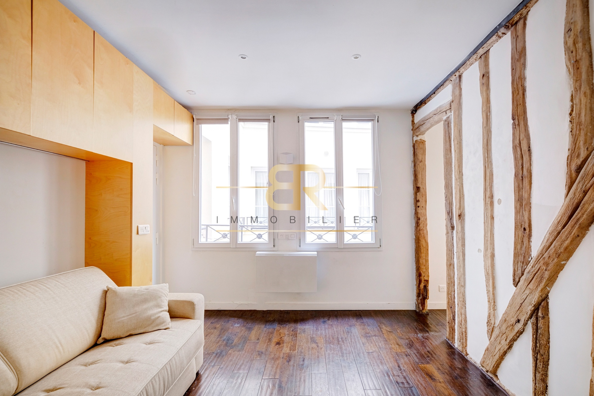 Entre les métros Hôtel de Ville et Rambuteau dans un bel immeuble ancien fraîchement ravalé sécurisé avec digicode, au 2ème étage avec ascenseur sur cour charmant studio refait par architecte. Ce bien comprend: une pièce principale, une cuisine semi ouverte toute équipée, une salle d'eau et WC. Poutres apparentes. Belle distribution des volumes. Calme et lumière. Nombreux rangements. Bien rare!