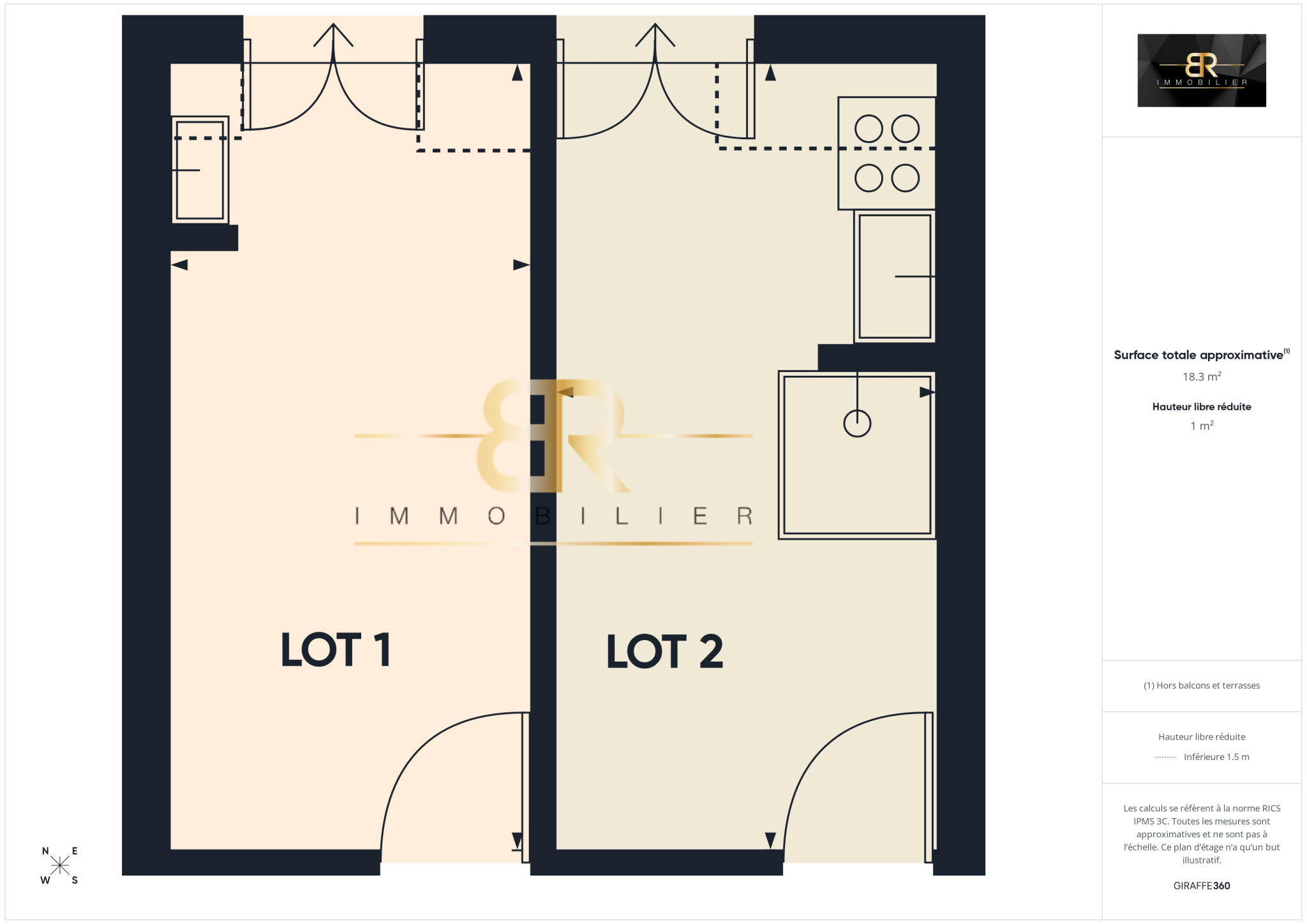 Le bien se compose de deux lots mitoyens qu’il faudra réunir ( DEVIS EFFECTUÉ ) afin de créer un grand studio lumineux, doté de deux grandes portes-fenêtres, pour une surface d’environ 16 m² Carrez (18 m² au sol). Deux points d’eau sont présents sur place. L’ensemble est sain, bien entretenu et en bon état général, idéal pour un projet de rénovation et d’optimisation. ACTUELEMENT SANS WC usage d'un WC commun.