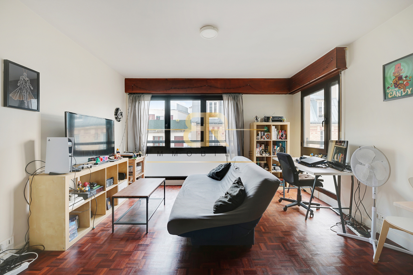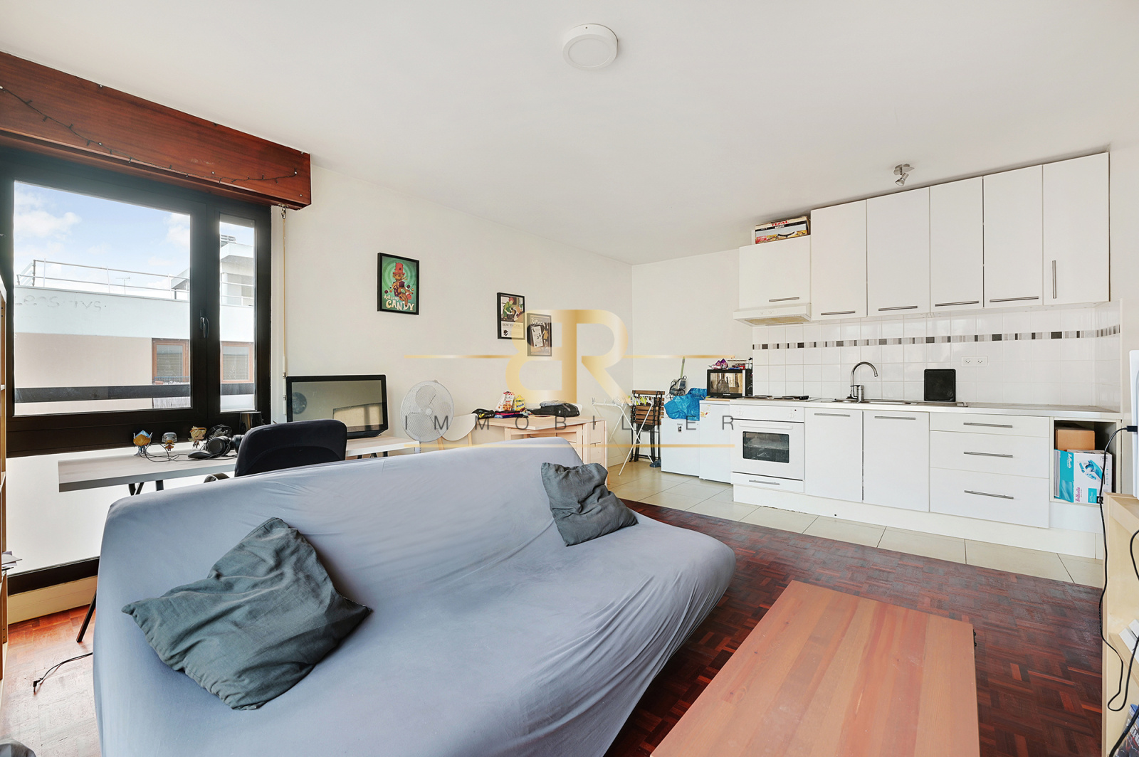 Situé au 5ème et dernier étage d'un immeuble de 1968 avec ASCENSEUR, il se compose d'un couloir desservant une salle d'eau avec wc, une chambre de bonne proportion ainsi qu'un LUMINEUX séjour avec cuisine ouverte aménagée et équipée, le tout vous offrant une vue dégagée sur rue CALME et exposé plein SUD.