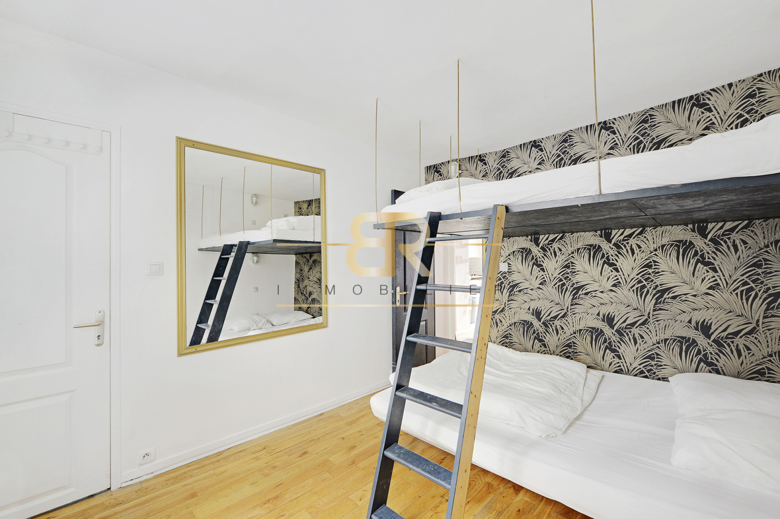 Paris - XVII ème - BATIGNOLLES - M° Brochant - 2 PIÈCES TRAVERSANT - VENDU MEUBLÉ - IMMEUBLE D'ANGLE - VUE DÉGAGÉE - SEUL SUR LE PALIER - CACHET MANIFESTE - CALME - EXCELLENT RENDEMENT - DOUBLE AFFECTATION - Le cabinet BR Immobilier vous propose, à deux pas du parc Martin Luther King, du jardin des Batignolles, de la nouvelle cité judiciaire, des transports et des commerces, un charmant 2 pièces traversant de 29 M2 loi Carrez et 30 M2 habitables. Situé au 1er étage SANS ASCENSEUR d'un bel immeuble d'ange 1900 et seul sur le palier, ce bien se présente comme suit : l'entrée donne directement (aucune perte de surface) sur un spacieux séjour avec mezzanine orné de deux grandes fenêtres et de poutres apparentes, une cuisine ouverte aménagé et équipée, une belle chambre au calme sur cour ne souffrant d'aucun vis-à-vis, une salle d'eau, ainsi qu'un WC séparé. Cave commune. Excellent rendement : 100 € / Nuit pour deux convives et 168 € / Nuit pour 6 convives.