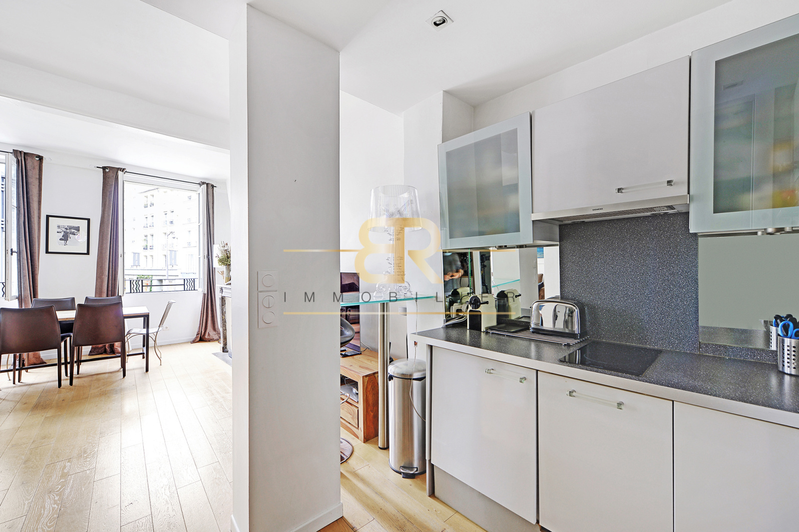 Cet appartement d'architecte entièrement rénové avec des MATÉRIAUX DE QUALITÉ, se compose d'une pièce de vie SPACIEUSE et AGRÉABLE de 23 m² avec vue sur PLACE ARBORÉE, une CUISINE OUVERTE sur le séjour ENTIÈREMENT ÉQUIPÉE (Marque LEICHT), une SALLE D'EAU MODERNE avec WC, une CHAMBRE CLIMATISÉE avec VOLETS ROULANTS SOMFY donnant sur une petite TERRASSE.
