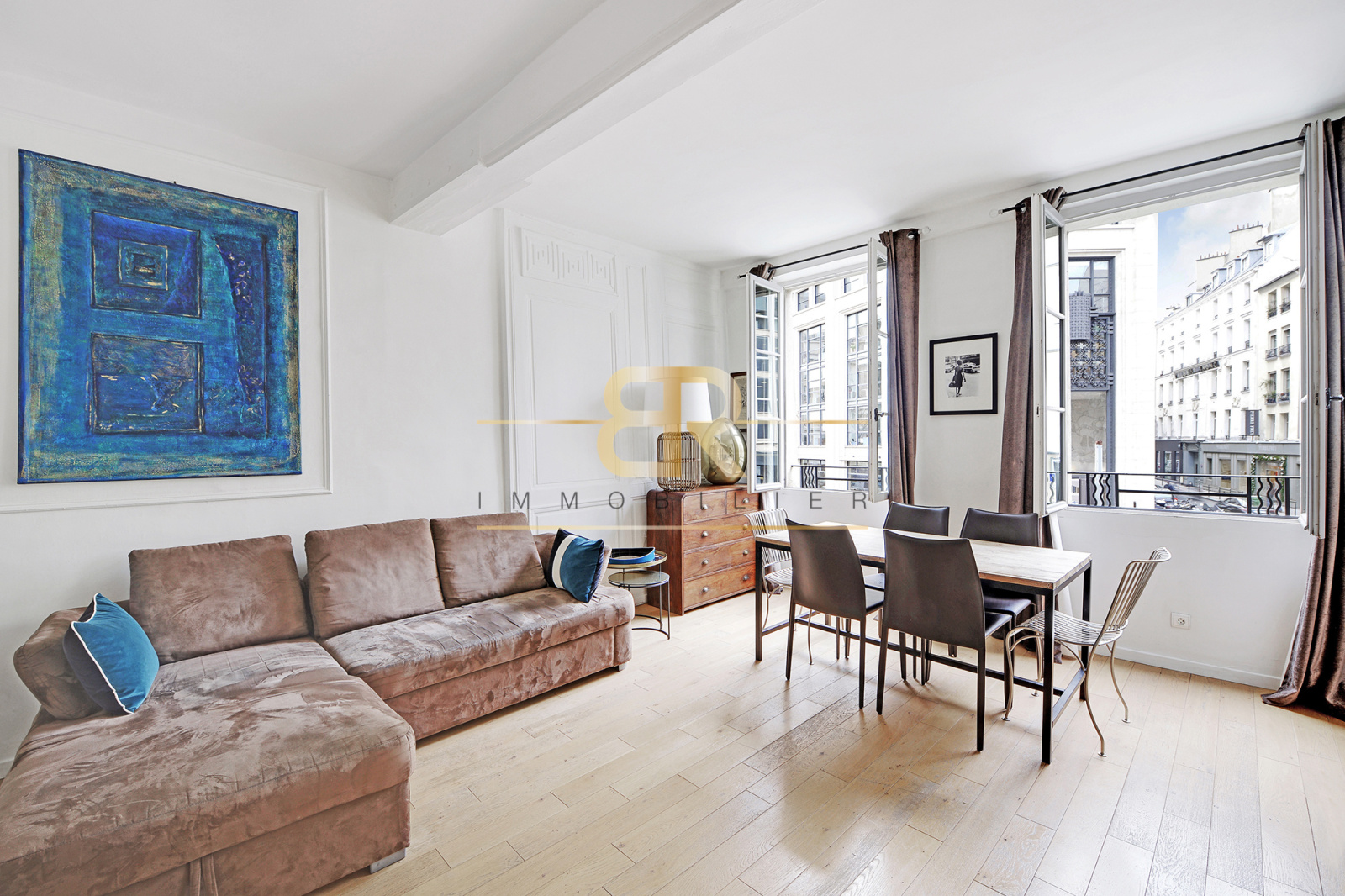 RUE MONTMARTRE - A proximité des anciens locaux du journal Le Figaro, dans un immeuble ANCIEN et SÉCURISÉ, le Cabinet BR Immobilier a le plaisir de vous présenter ce SUBLIME appartement de DEUX PIÈCES de 47,20 m² situé au 1ER ÉTAGE avec une hauteur sous plafond de 2,92 mètres.