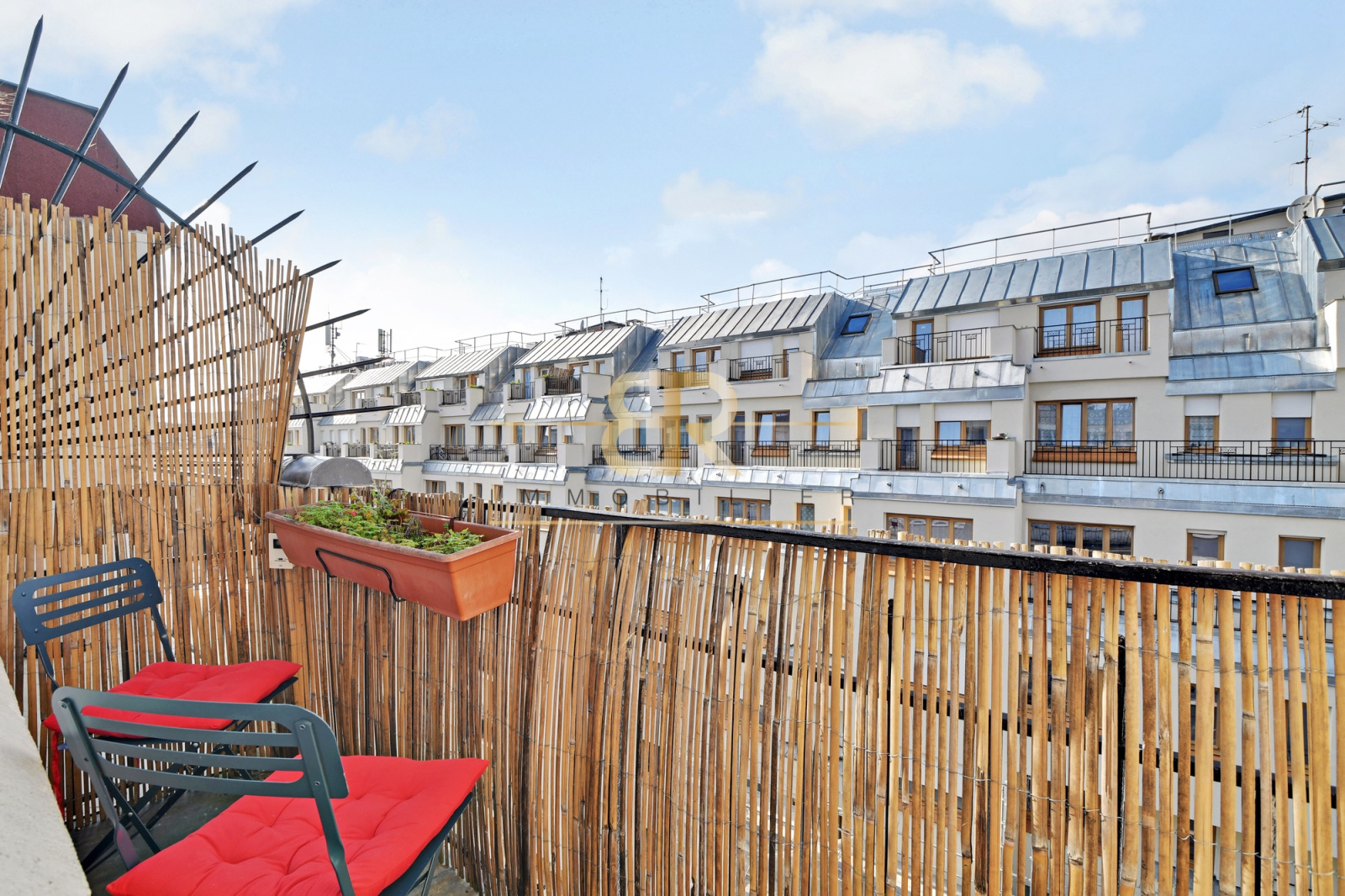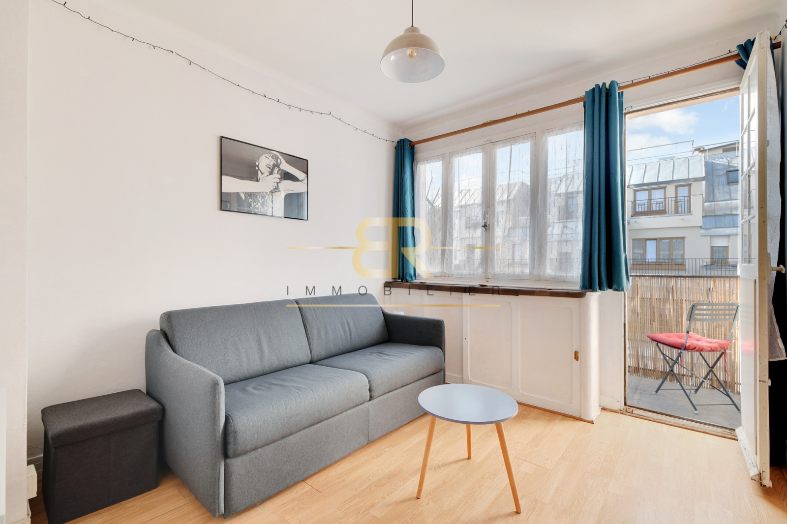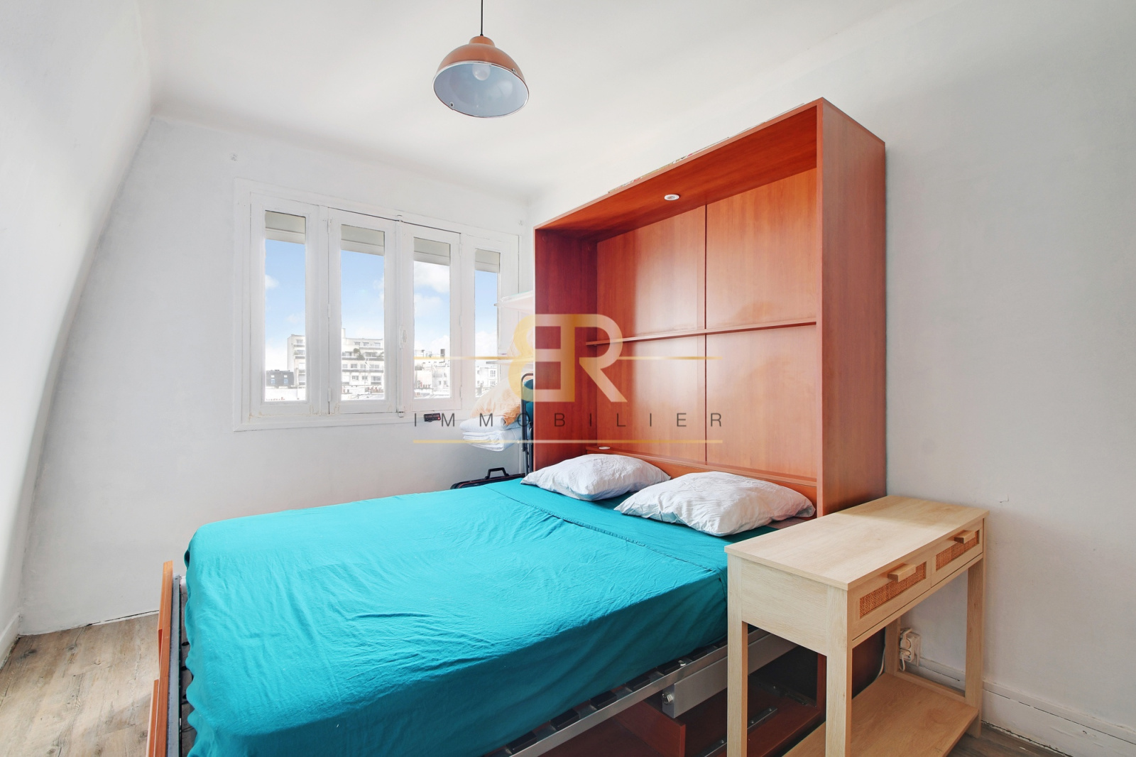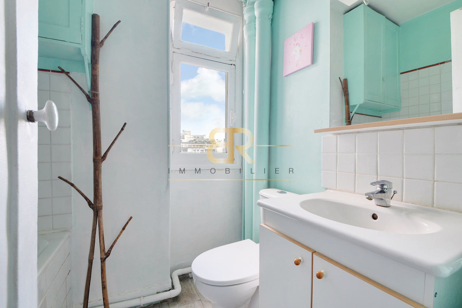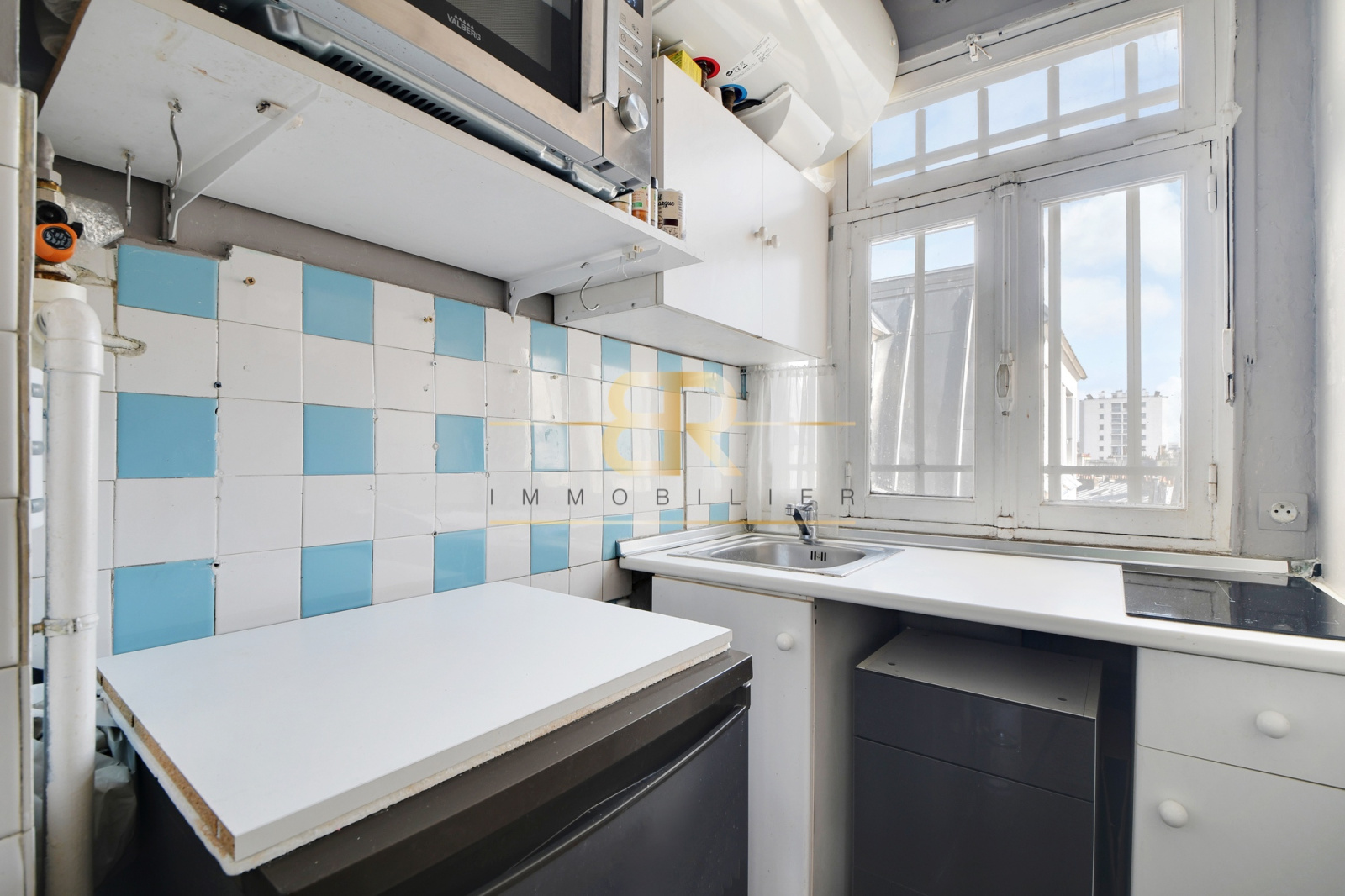 Celui-ci se compose d'une entrée desservant le séjour LUMINEUX (SUD-OUEST) donnant sur un BALCON de 2,70m2, d'une chambre donnant vue sur COUR et vue dégagée sur les toits de Paris, d'une cuisine séparée, ainsi que d'une salle de bain avec WC. Une CAVE complète le bien.