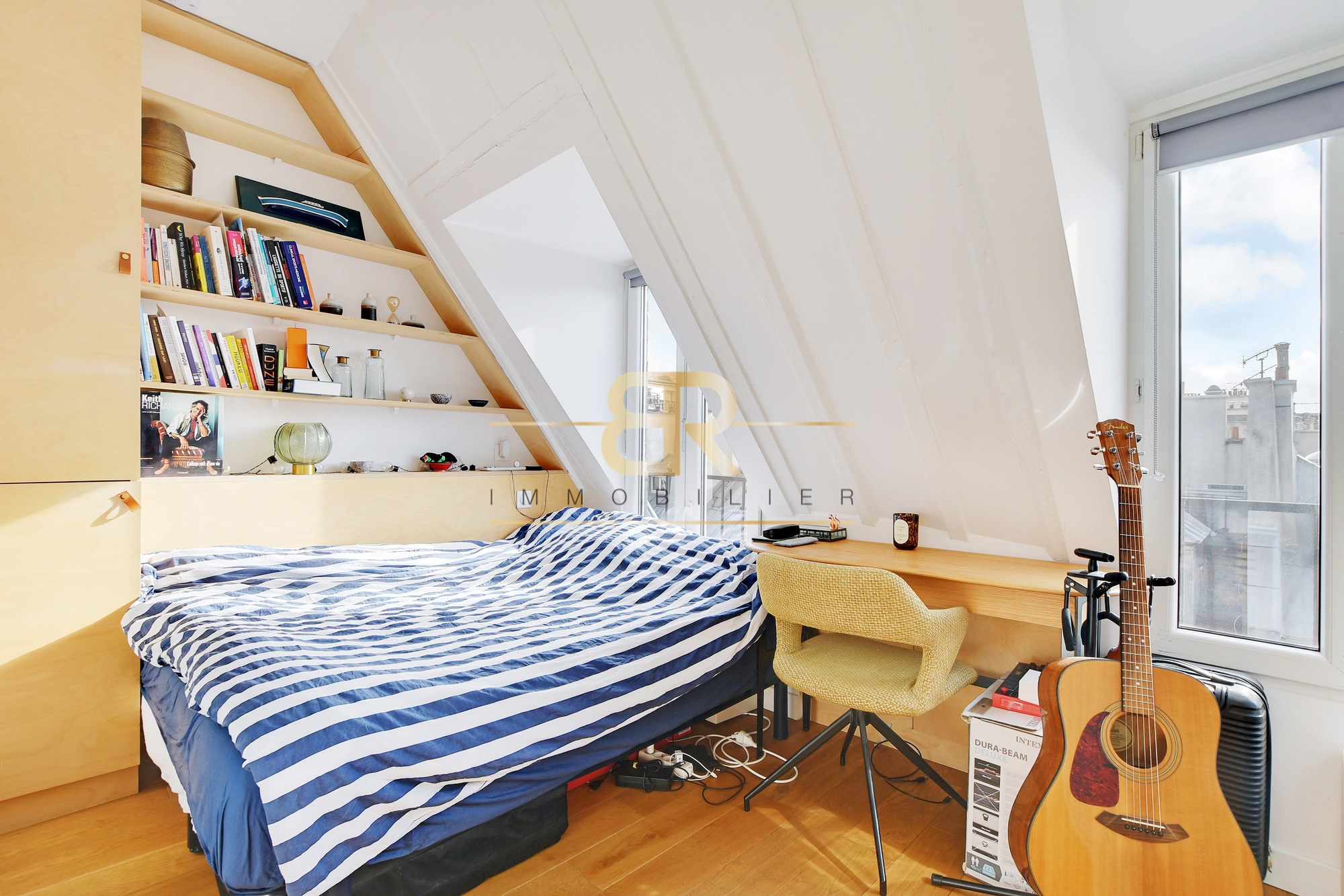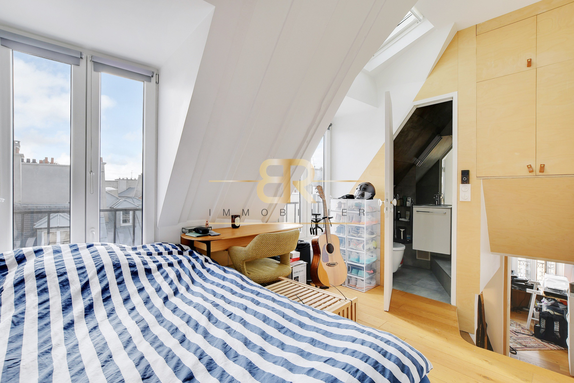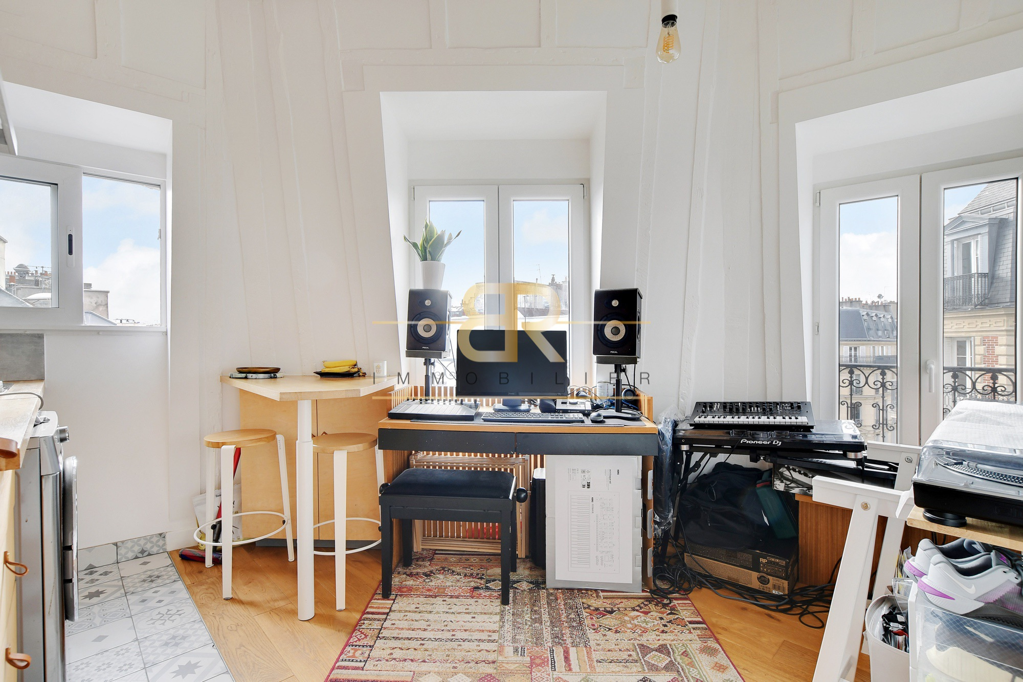 Situé au 6ème et dernier étage sans ascenseur d’un bel immeuble du XIXème siècle aux parties communes récemment rénovées, cet appartement atypique séduit par son style loft, sa fonctionnalité et son extrême luminosité. Offrant 24 m² au sol (17m² Carrez), il se compose au premier niveau d’une pièce de vie baignée de lumière grâce à ses trois fenêtres, avec cuisine ouverte entièrement équipée et nombreux rangements sur mesure, offrant une vue dégagée sur les toits de Paris dans un calme absolu. À l’étage, une chambre spacieuse avec deux fenêtres et un Velux bénéficie également de rangements intégrés, complétée par une salle d’eau moderne avec WC. Entièrement rénové il y a cinq ans avec des matériaux de qualité, ce bien conjugue le charme de l’ancien, le confort moderne et une adresse recherchée au cœur du quartier Montorgueil, au sein d’une petite copropriété conviviale de dix lots. Un véritable coup de cœur pour un premier achat, un pied-à-terre ou un investissement.