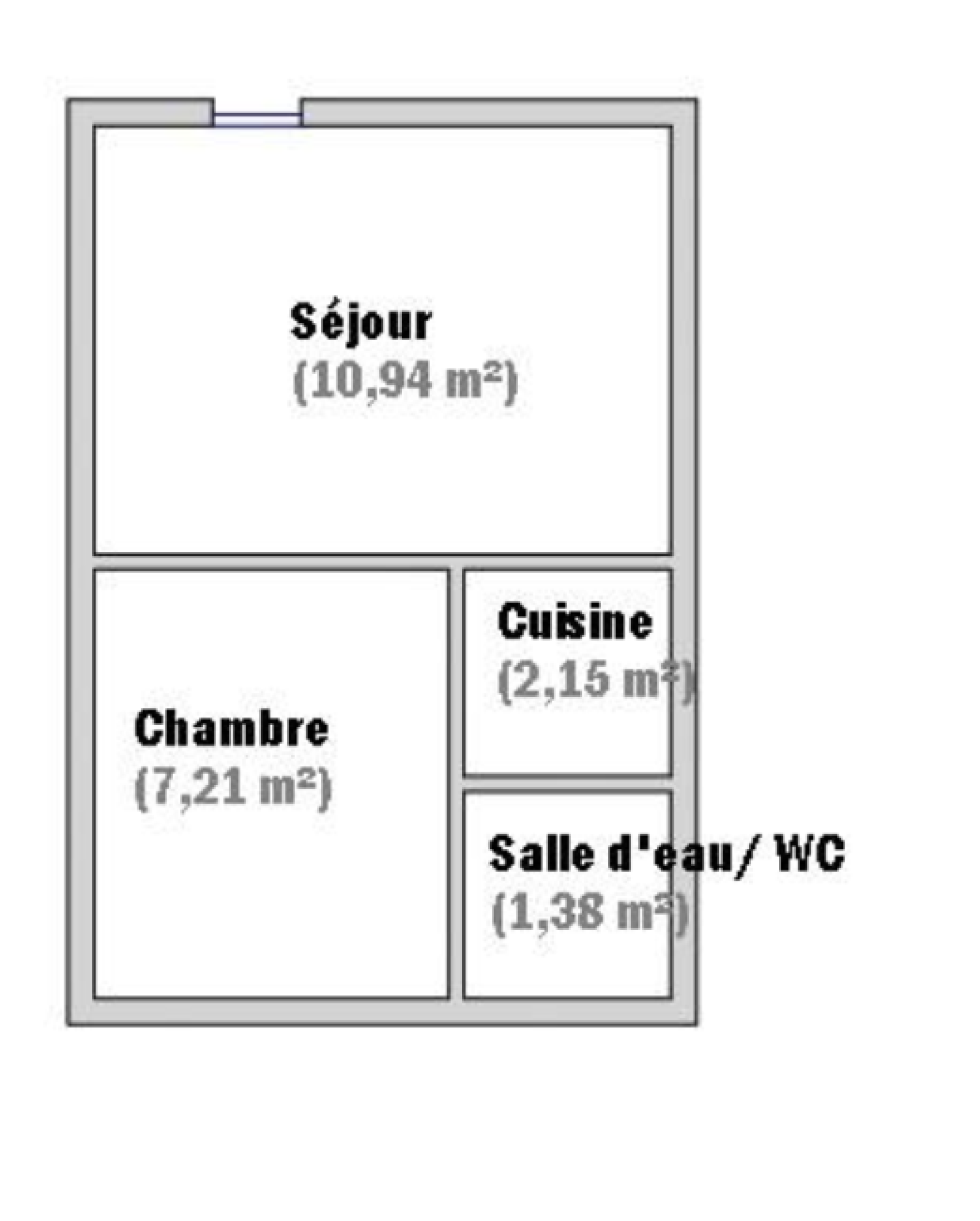 Totalement au CALME, celui-ci se compose d'un séjour de 10,94m2 donnant sur COUR, d'une cuisine et d'une chambre donnant sur la salle d'eau avec WC.