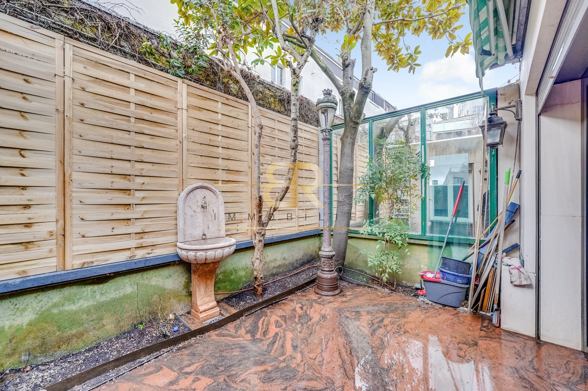 Dès l'entrée, vous serez séduit par un élégant couloir doté de placards sur mesure, qui dessert un lumineux salon mettant en valeur une belle cheminée et une bibliothèque intégrée. La salle à manger, baignée de lumière grâce à une large baie vitrée, s'ouvre entièrement sur un patio privatif de 12,60 m² agrémenté d'un vélux — un véritable havre de paix au cœur de la capitale. La cuisine indépendante, entièrement refaite à neuf, complète harmonieusement cet espace de vie convivial et raffiné.