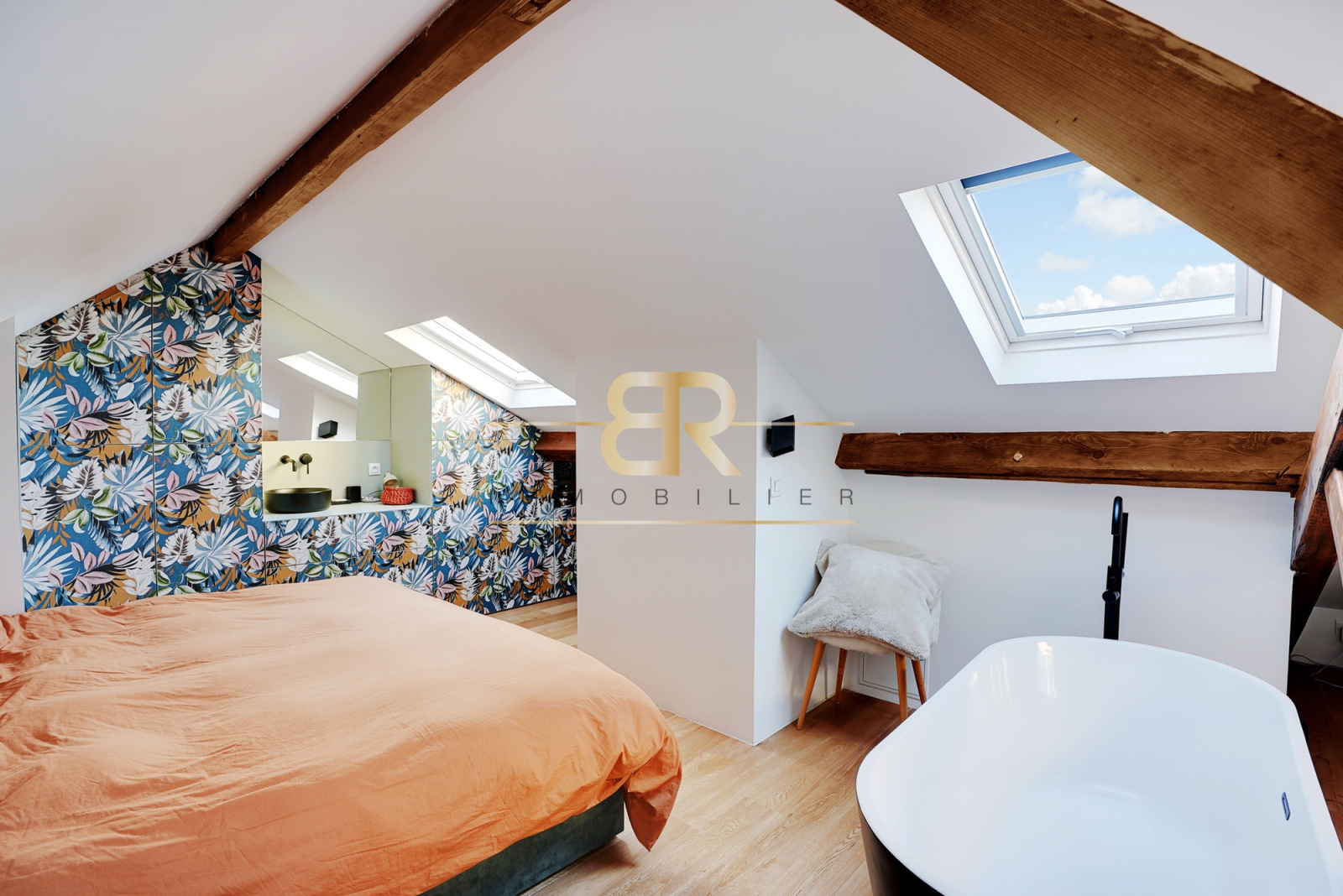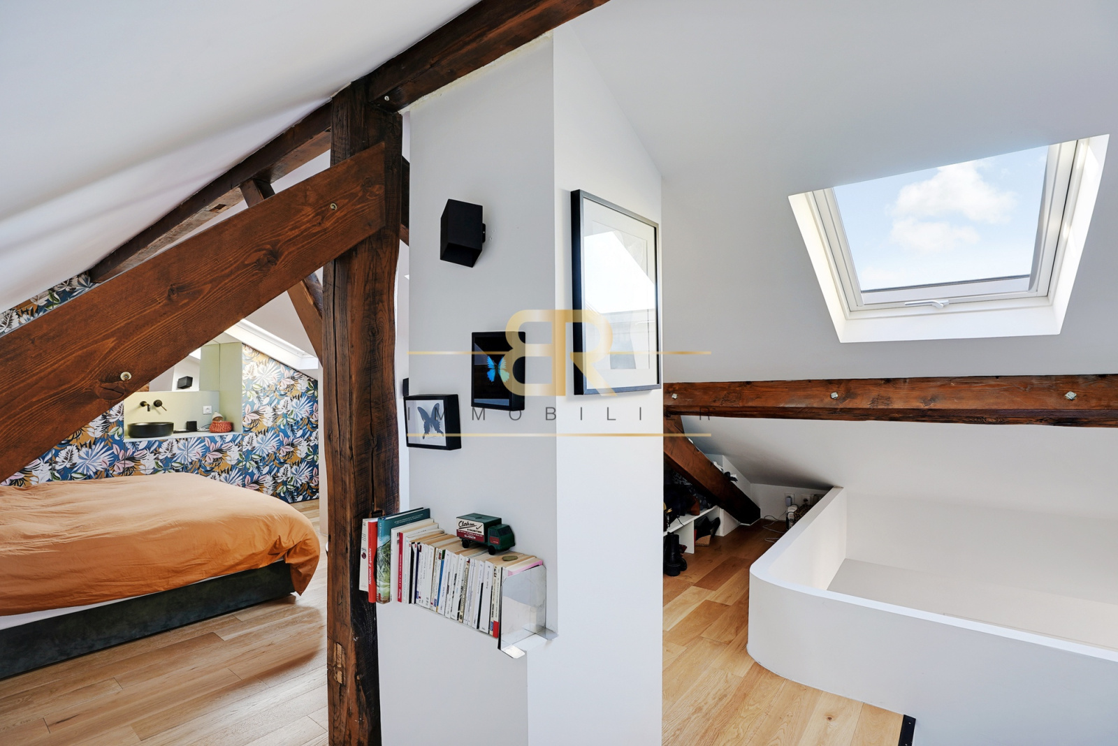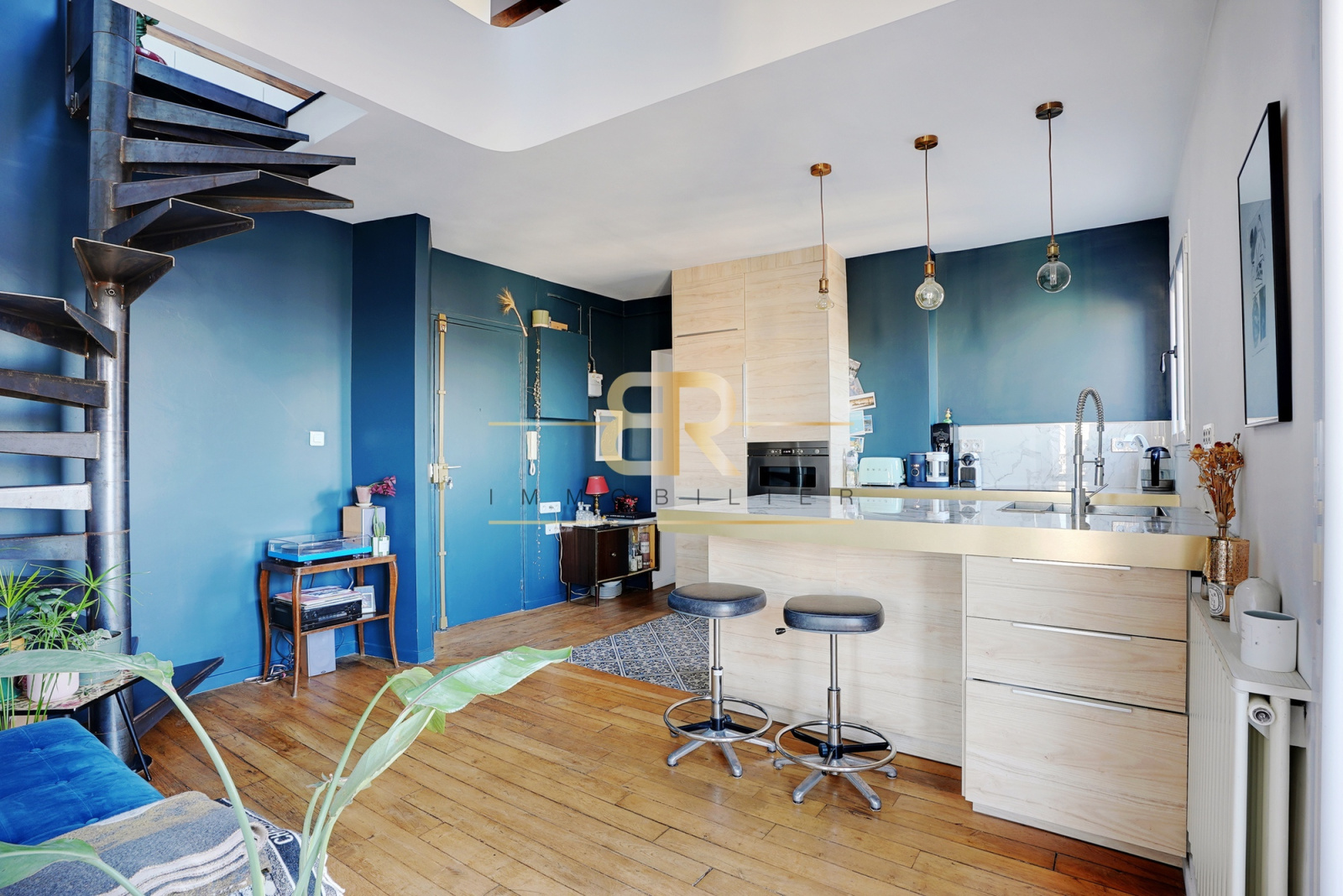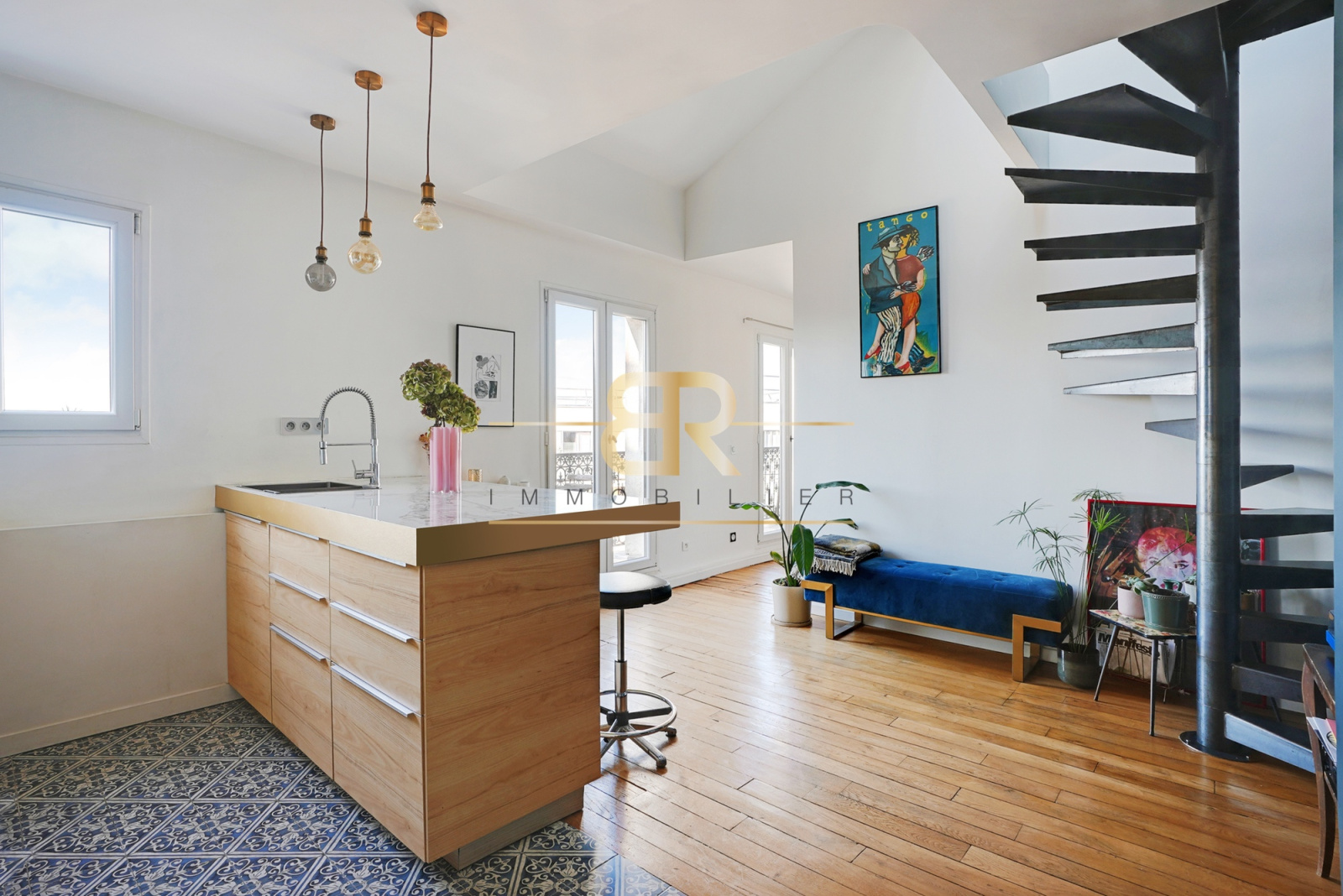 Comprenant un séjour donnant sur une salle à manger avec cuisine US totalement équipée, une salle d'eau avec WC, une seconde chambre ou bureau. À l'étage, une suite PARENTALE avec BAIGNOIRE et DRESSING sur mesure. PRESTATION DE QUALITÉ, VUE DÉGAGÉE sans vis-à-vis sur PARIS et la TOUR EIFFEL, aucune perte d'espace. Baigné de LUMIÈRE / CALME. Une CAVE et un local vélo complètent ce bien. Commerce et transports à proximité.