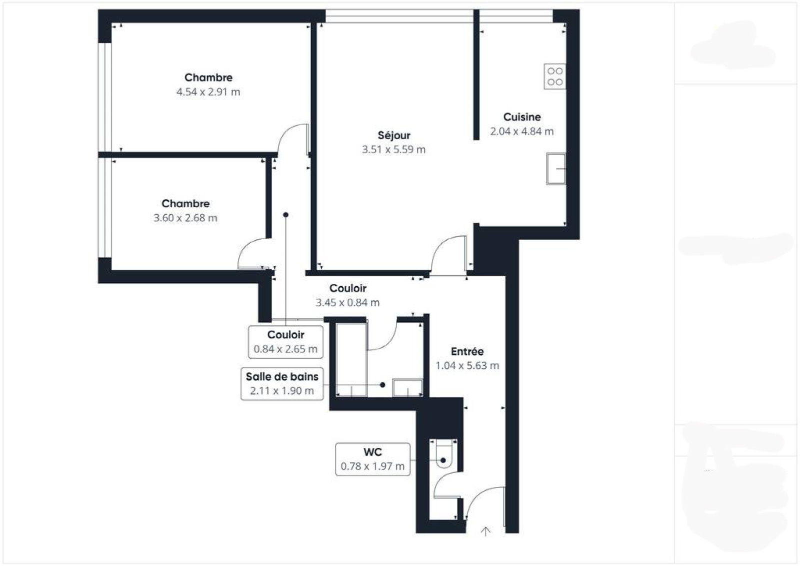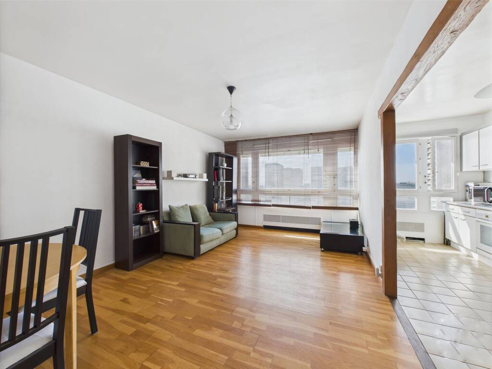BIEN AGENCÉ, celui-ci vous offre une entrée desservant un séjour lumineux avec cuisine semi-ouverte (possibilité d’ouverture complète), deux chambres, une salle de bain et un WC séparé.