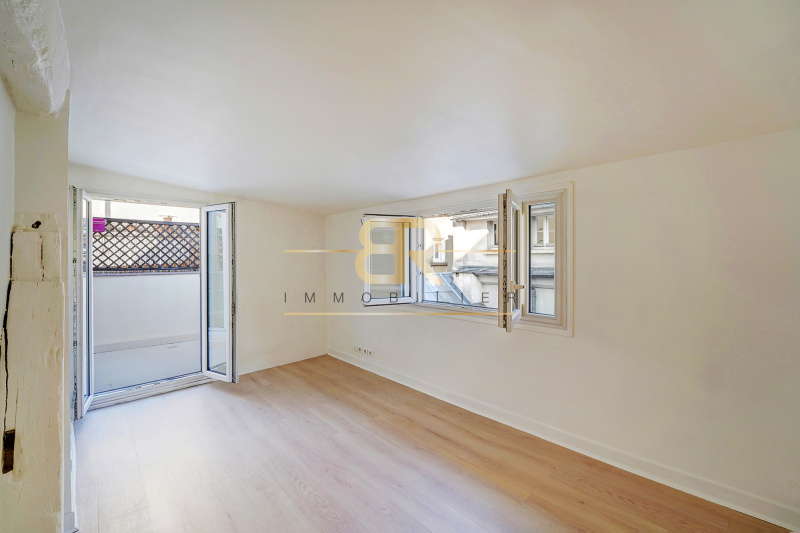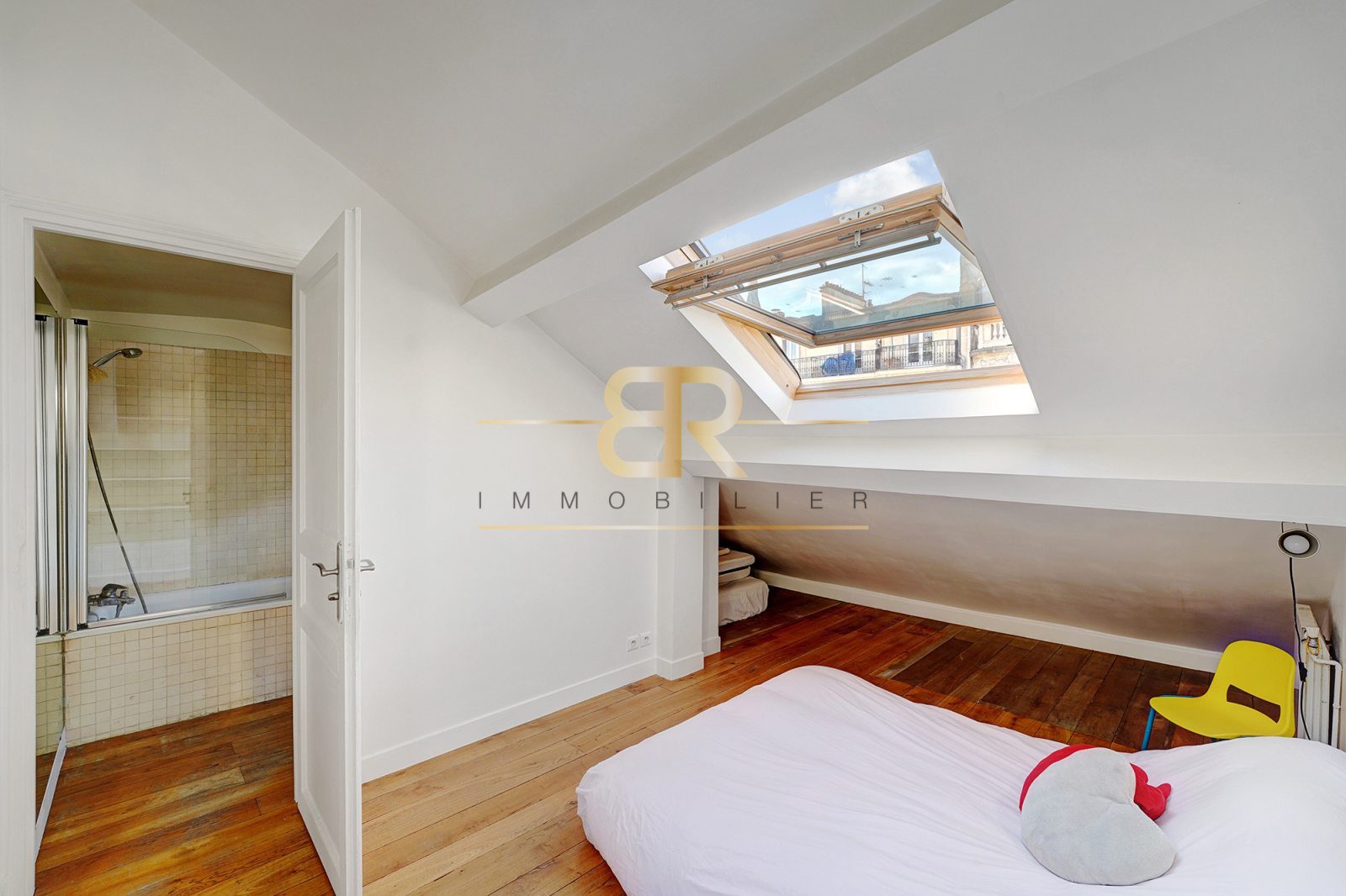 Ce duplex traversant de 65,65 m² Carrez (82,51 m² au sol) profite d’une belle luminosité Est-Ouest et d’un plan modulable sans murs porteurs. Le premier niveau comprend un vaste séjour exposé Ouest avec cuisine ouverte, des WC (avec possibilité d’y créer une douche) et un grand dressing. À l’étage, deux pièces en enfilade mènent à la chambre et à une salle de bains avec WC. La terrasse de 5 m², exposée Est, ensoleillée et sans vis-à-vis, offre une vue dégagée sur les toits de Paris.