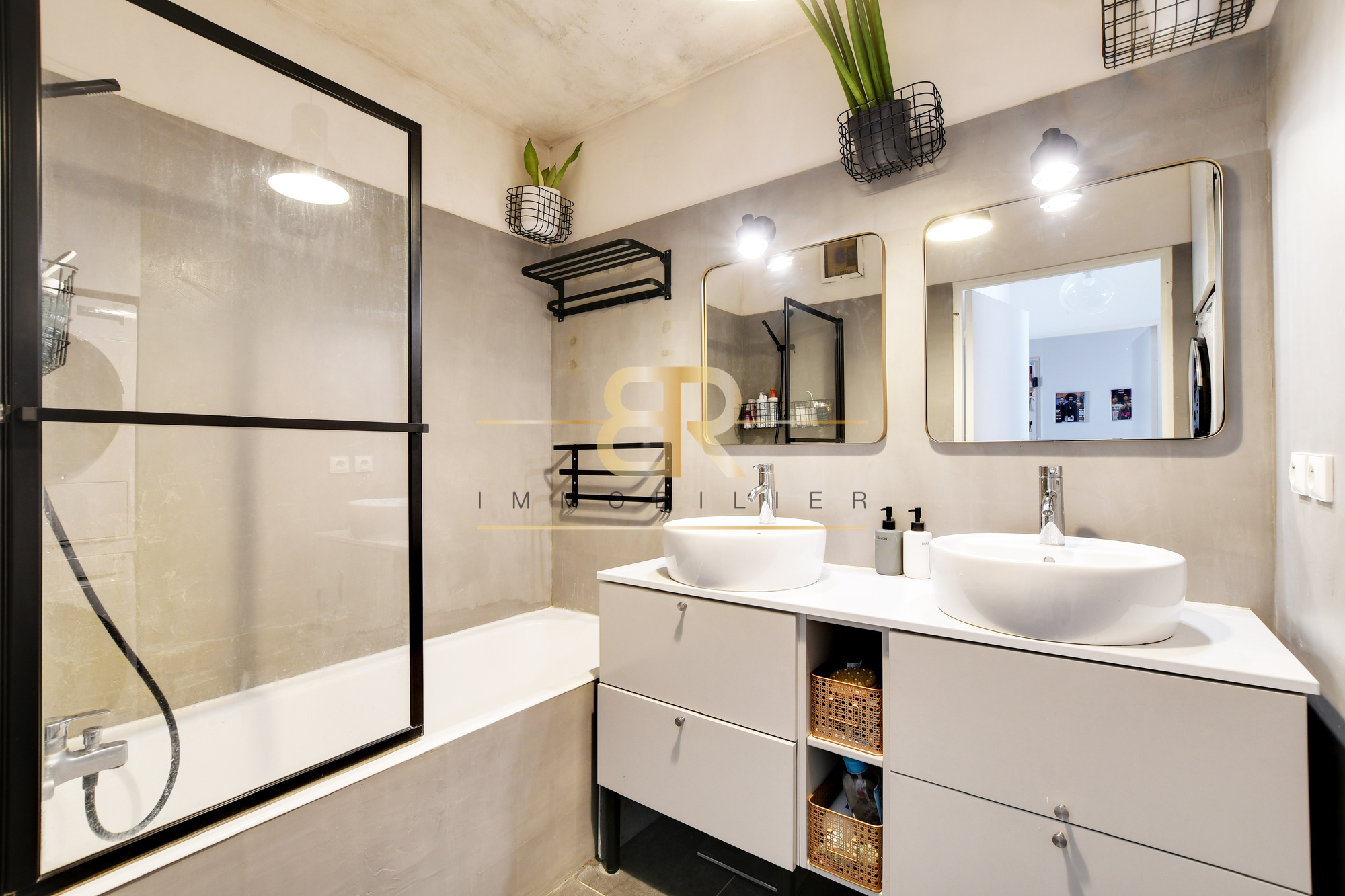 Cet appartement est composé d’un VASTE SÉJOUR, d’une CUISINE AMÉNAGÉE ÉQUIPÉE, de DEUX CHAMBRES avec RANGEMENTS, d’une SALLE DE BAINS avec baignoire et double vasques, et de WC séparés. 2 balcons complètent ce bien, offrant un cadre de vie agréable et lumineux.