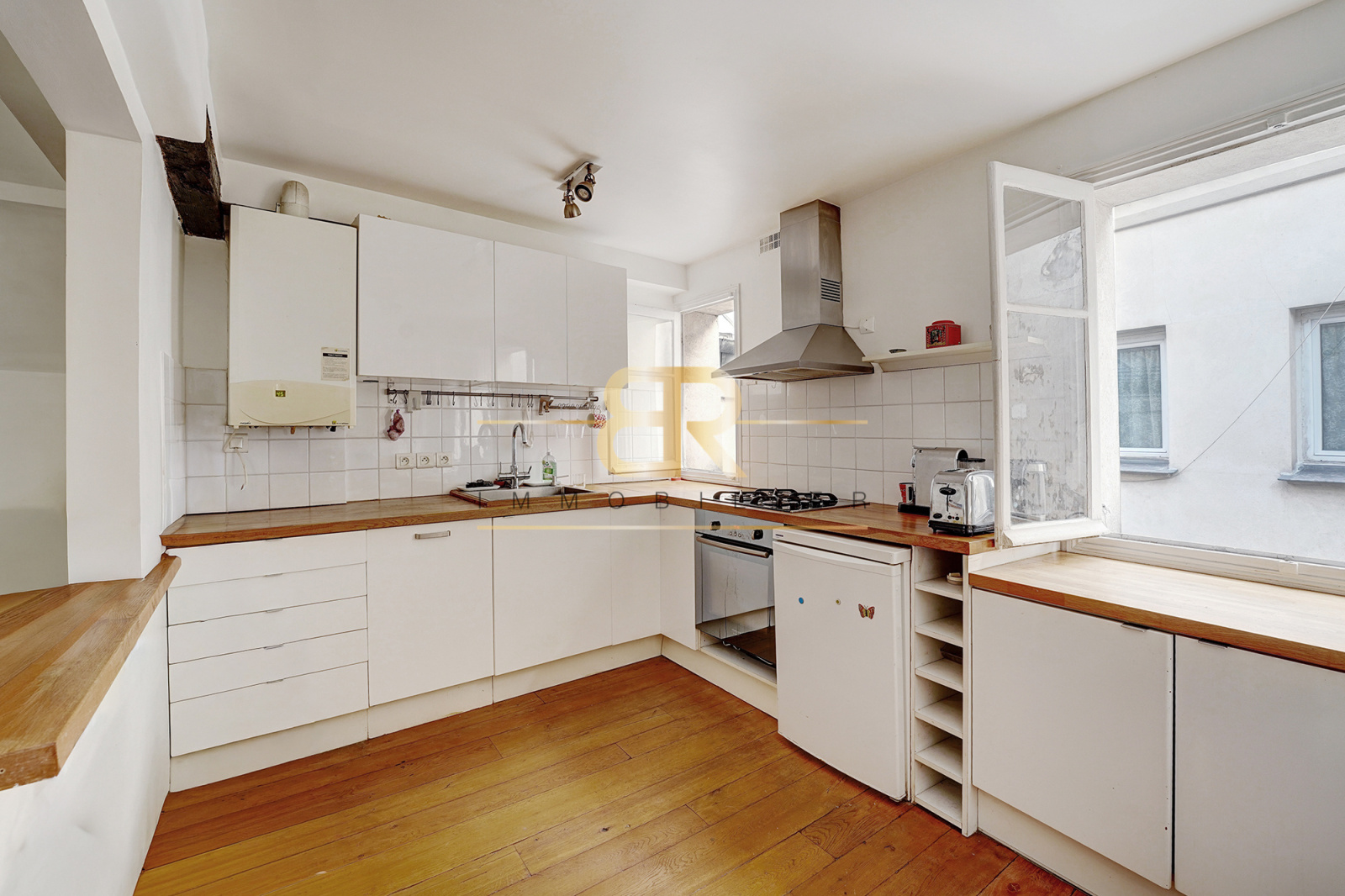 Ce duplex traversant de 65,65 m² Carrez (82,51 m² au sol) profite d’une belle luminosité Est-Ouest et d’un plan modulable sans murs porteurs. Le premier niveau comprend un vaste séjour exposé Ouest avec cuisine ouverte, des WC (avec possibilité d’y créer une douche) et un grand dressing. À l’étage, deux pièces en enfilade mènent à la chambre et à une salle de bains avec WC. La terrasse de 5 m², exposée Est, ensoleillée et sans vis-à-vis, offre une vue dégagée sur les toits de Paris.