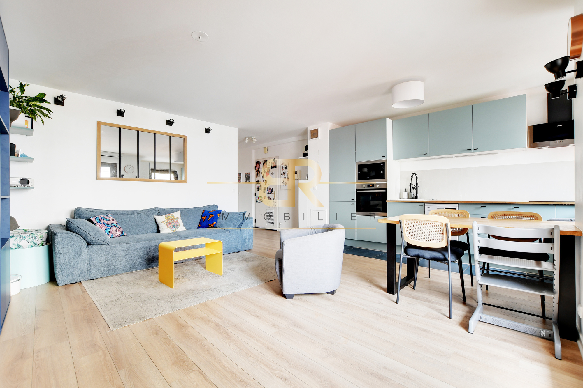Cet appartement est composé d’un VASTE SÉJOUR, d’une CUISINE AMÉNAGÉE ÉQUIPÉE, de DEUX CHAMBRES avec RANGEMENTS, d’une SALLE DE BAINS avec baignoire et double vasques, et de WC séparés. 2 balcons complètent ce bien, offrant un cadre de vie agréable et lumineux.