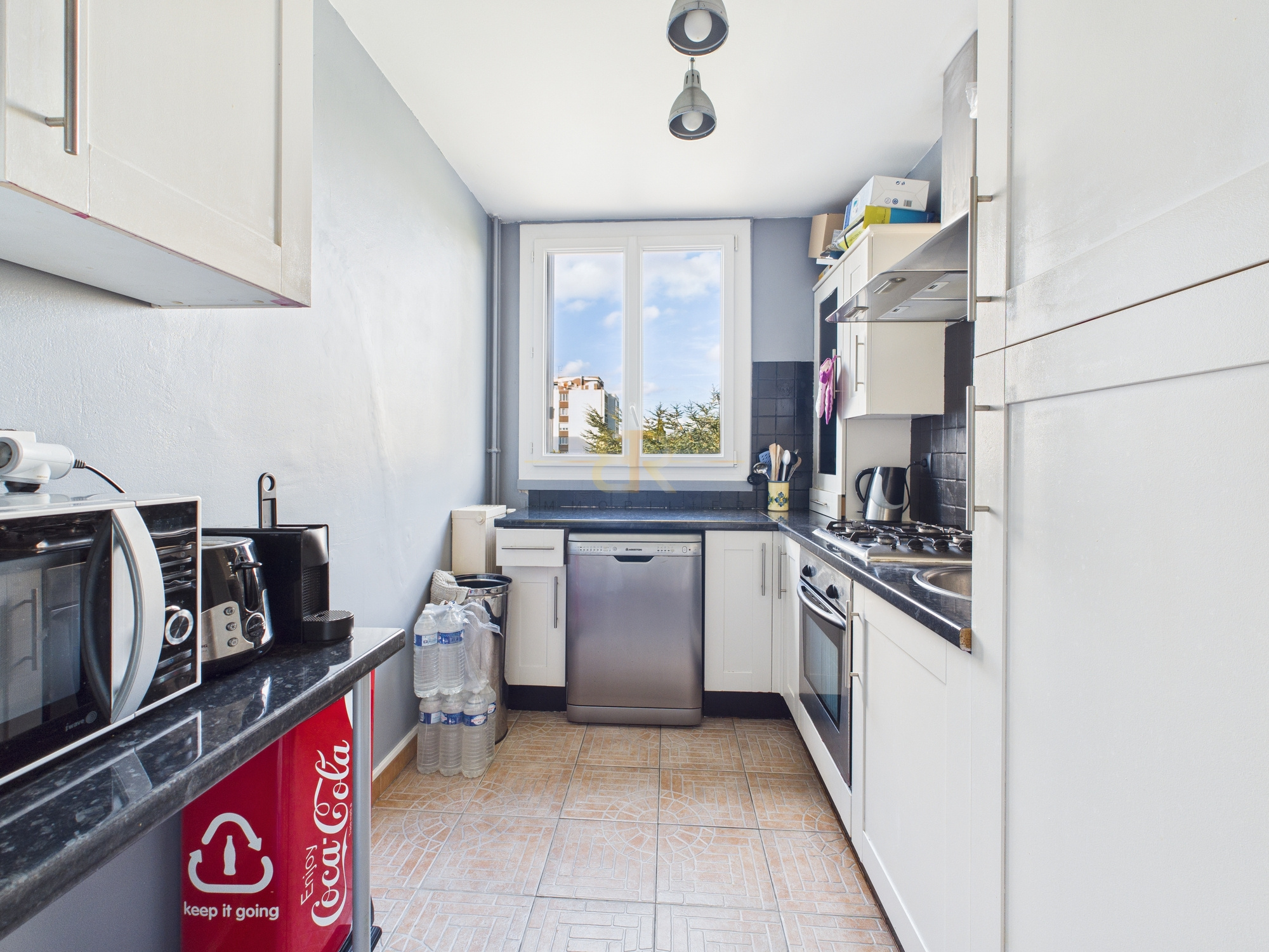 Charges : 200 euros/ Mois (chauffage, ascenceur, gardien, parking)