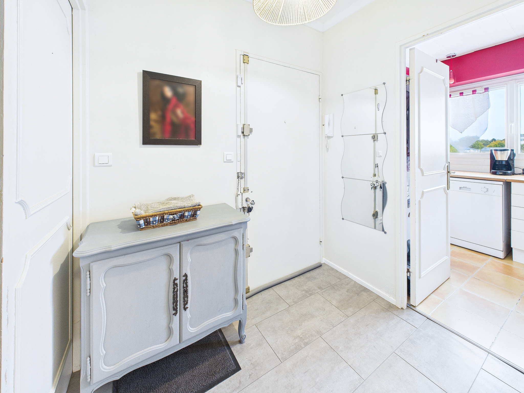 Il se compose d’une entrée accueillante desservant un vaste double séjour de 28 m², baigné de lumière et ouvrant sur un balcon avec une belle vue dégagée.