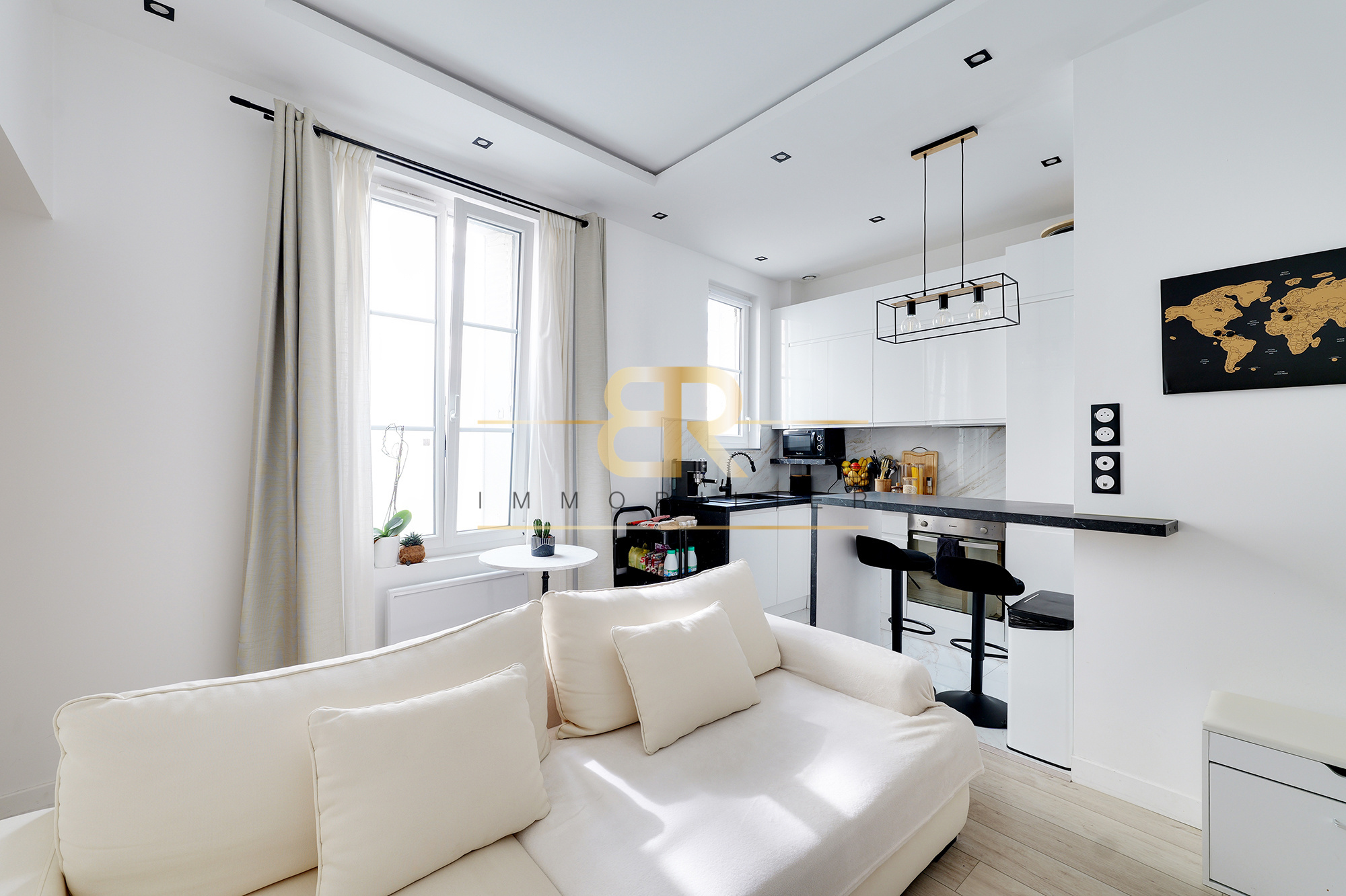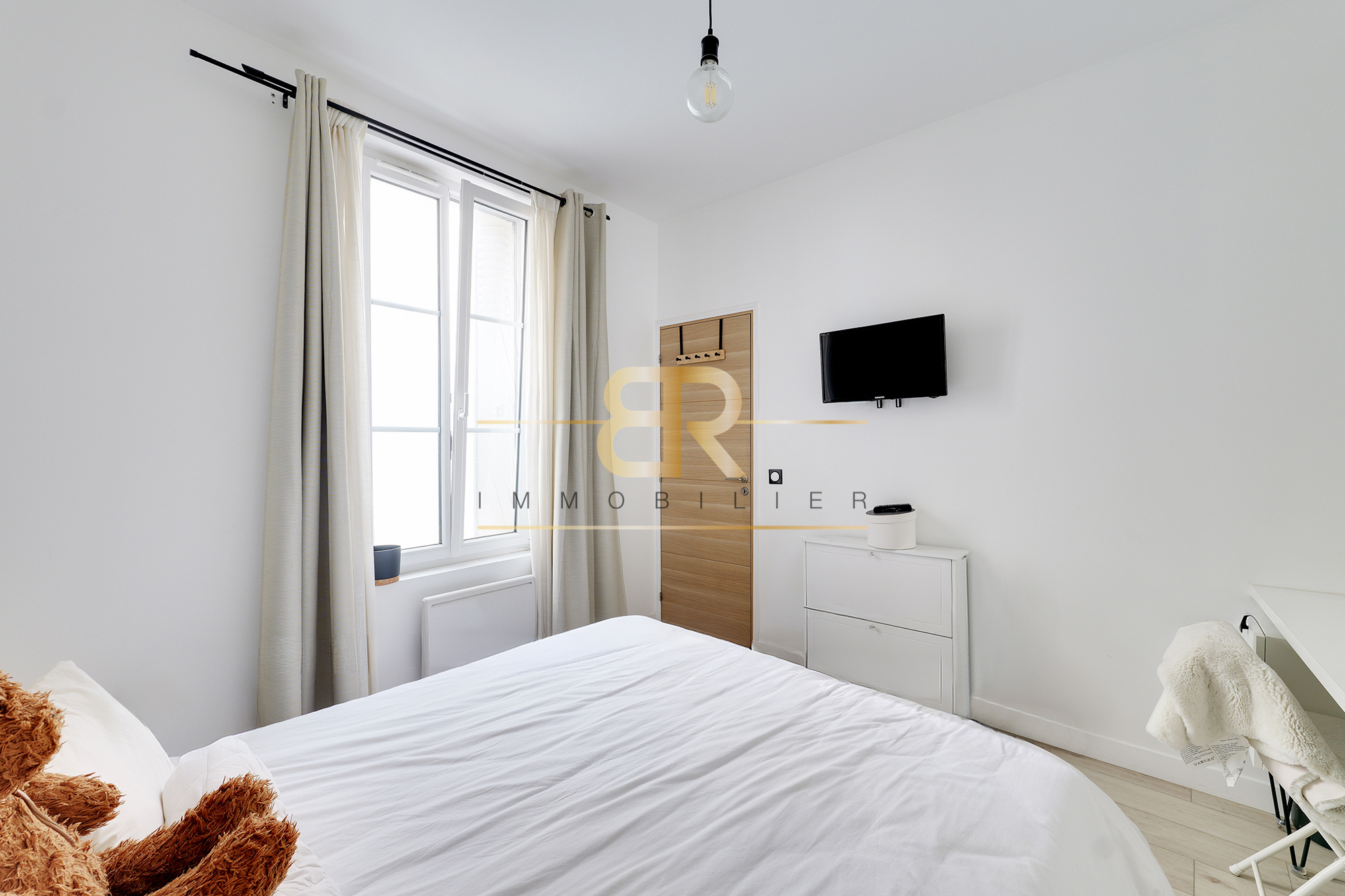 L’appartement se compose d’une ENTRÉE, d’un SÉJOUR LUMINEUX avec CUISINE AMÉRICAINE ouverte, de DEUX CHAMBRES CONFORTABLES et d’une SALLE D’EAU.