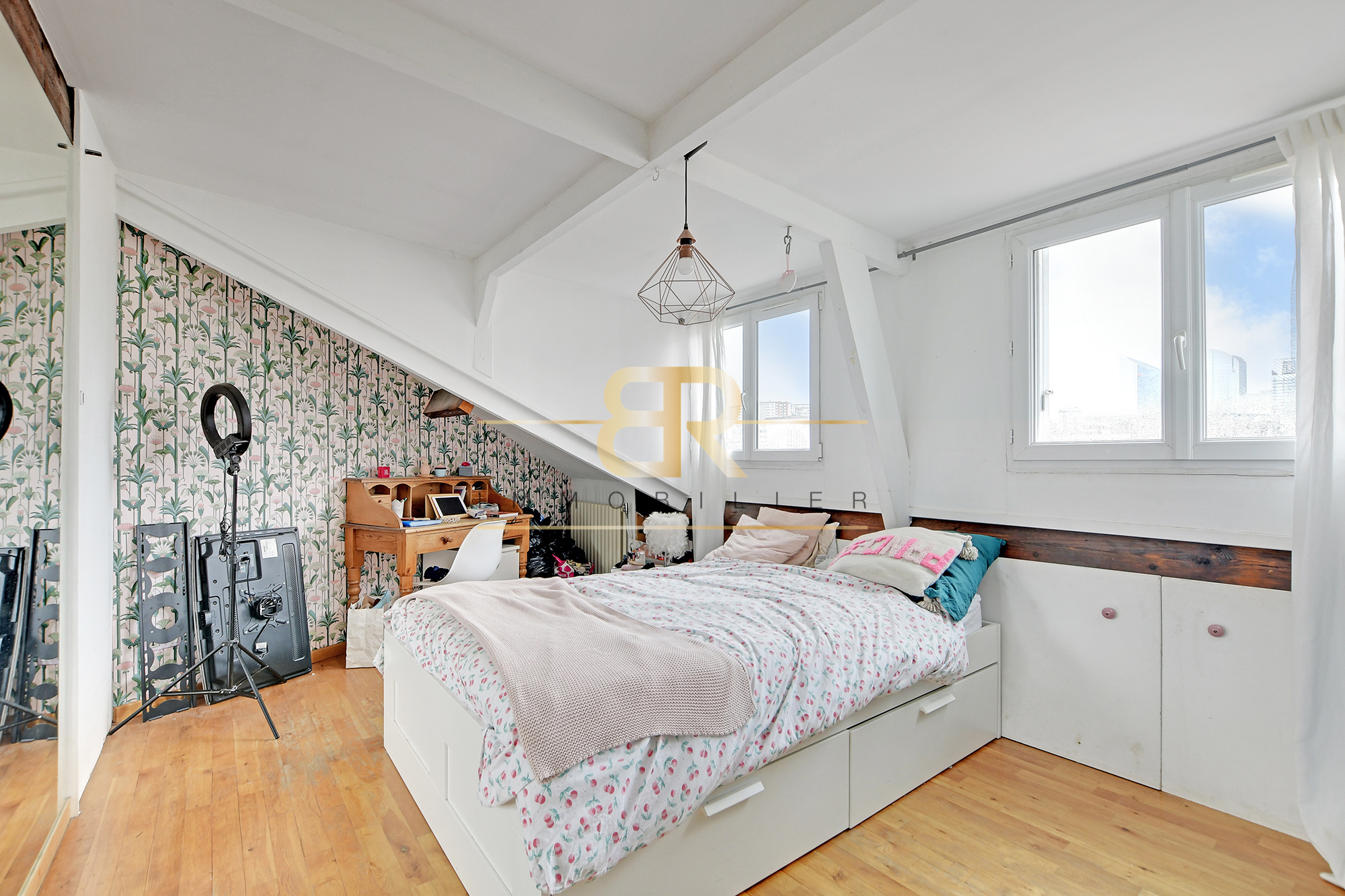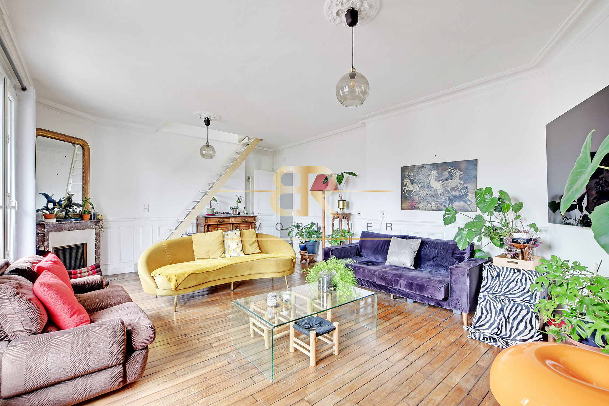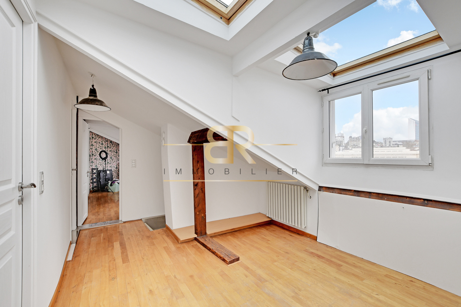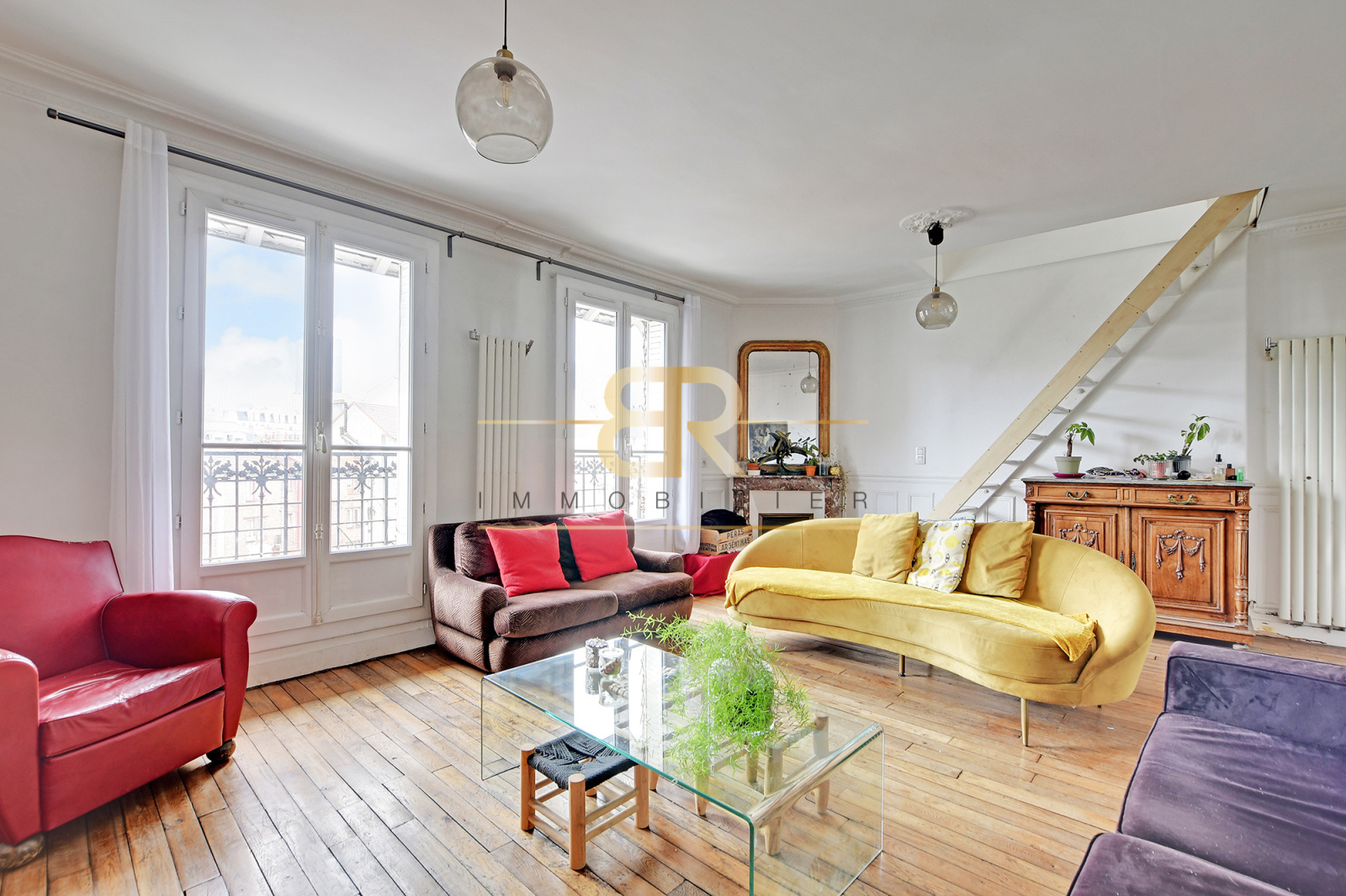 Au cœur de Puteaux, en HYPER CENTRE et au DERNIER ÉTAGE d’un bel IMMEUBLE ANCIEN ANNÉE 30 sécurisé SANS ASCENSEUR ce DUPLEX familial de charme séduit immédiatement par ses volumes, sa luminosité et sa vue spectaculaire. Développant 101 m² Carrez (environ 130 m² au sol), l’appartement offre une distribution idéale : dès l’entrée, un double séjour lumineux avec balconnet, une cuisine indépendante aménagée et équipée avec espace salle à manger, deux débarras et des WC séparés composent le premier niveau. À l’étage, l’espace nuit SOUS LES COMBLES AMÉNAGÉS accueille 3 CHAMBRES, un dégagement et une spacieuse salle de bains avec baignoire, douche et WC. TRAVERSANT, CALME et baigné de lumière, ce bien rare profite d’une vue imprenable et totalement dégagée sur la mairie et La Défense. Une cave complète l’ensemble. Un véritable coup de cœur, alliant cachet de l’ancien, fonctionnalité et emplacement premium en centre-ville.