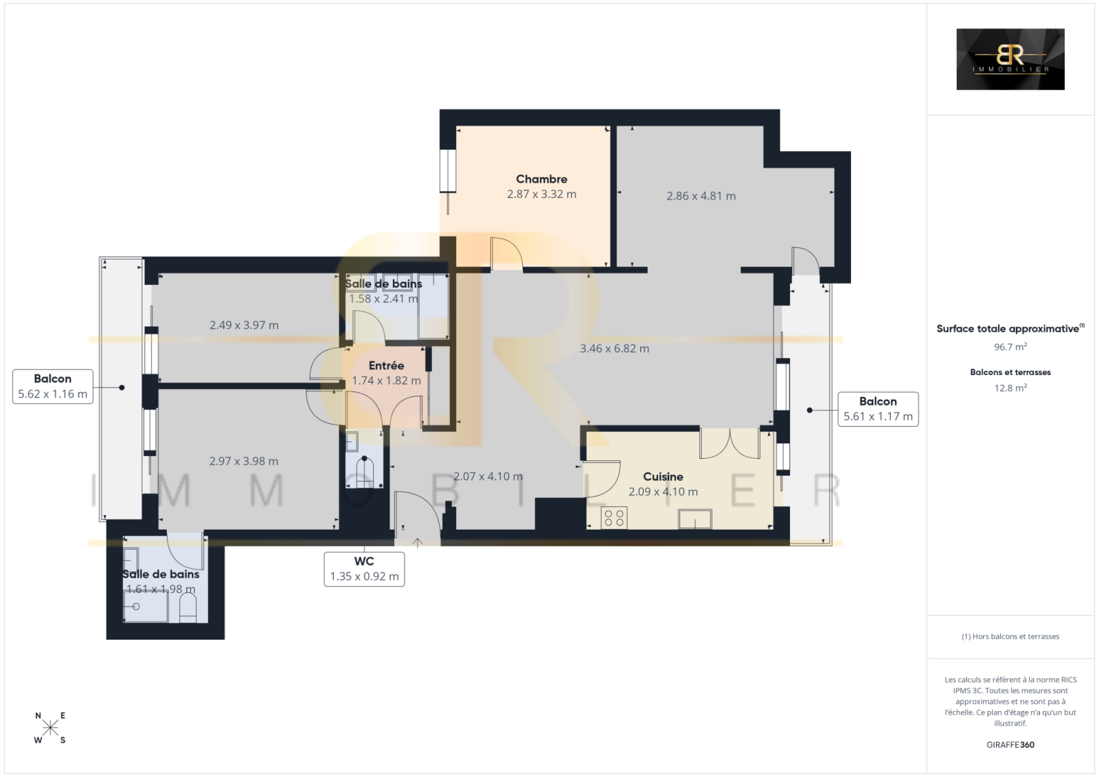 Le Cabinet BR Immobilier vous propose ce SUPERBE CINQ PIÈCES de 97 m² Carrez, entièrement REFAIT À NEUF, situé au 3e ÉTAGE AVEC ASCENSEUR d’une copropriété de standing CALME ET BIEN TENUE des années 70.