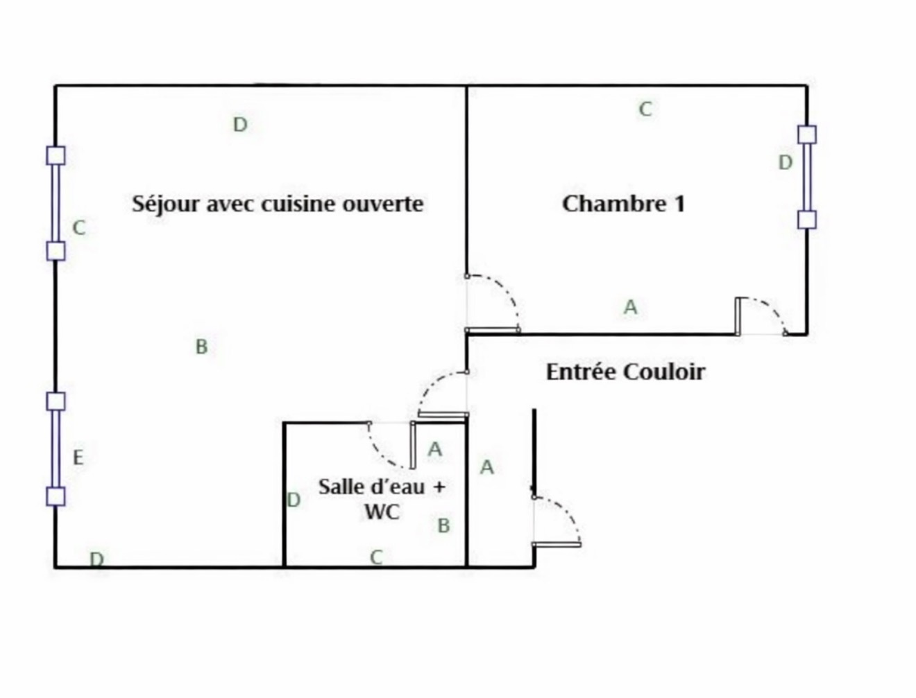 Il se compose d’une entrée, d’un séjour lumineux, de deux chambres (6,3 m² et 11 m², dont une pouvant servir de bureau), d’une cuisine indépendante et d’une salle d’eau.