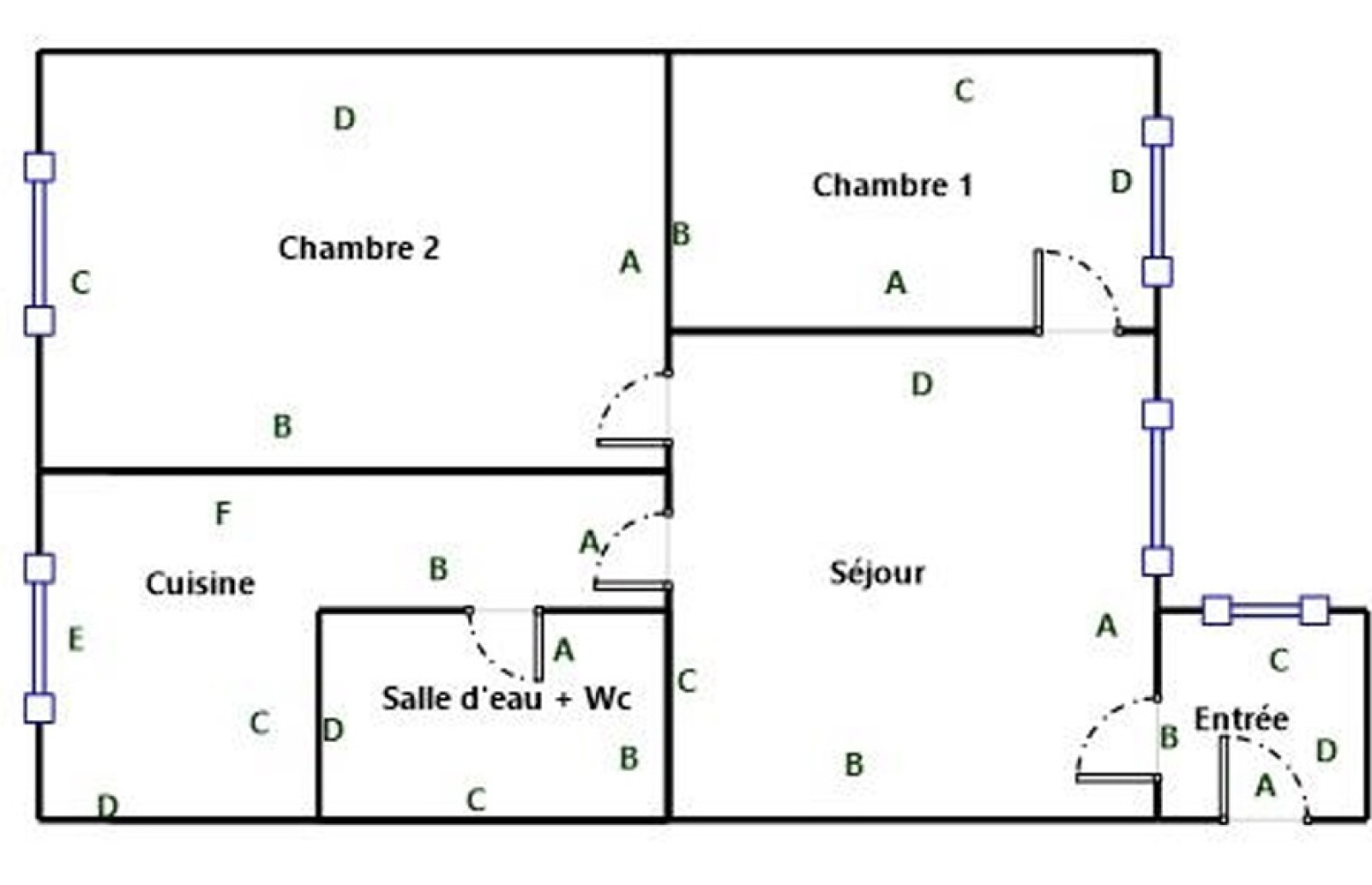Il se compose d’une entrée, d’un séjour lumineux, de deux chambres (6,3 m² et 11 m², dont une pouvant servir de bureau), d’une cuisine indépendante et d’une salle d’eau.