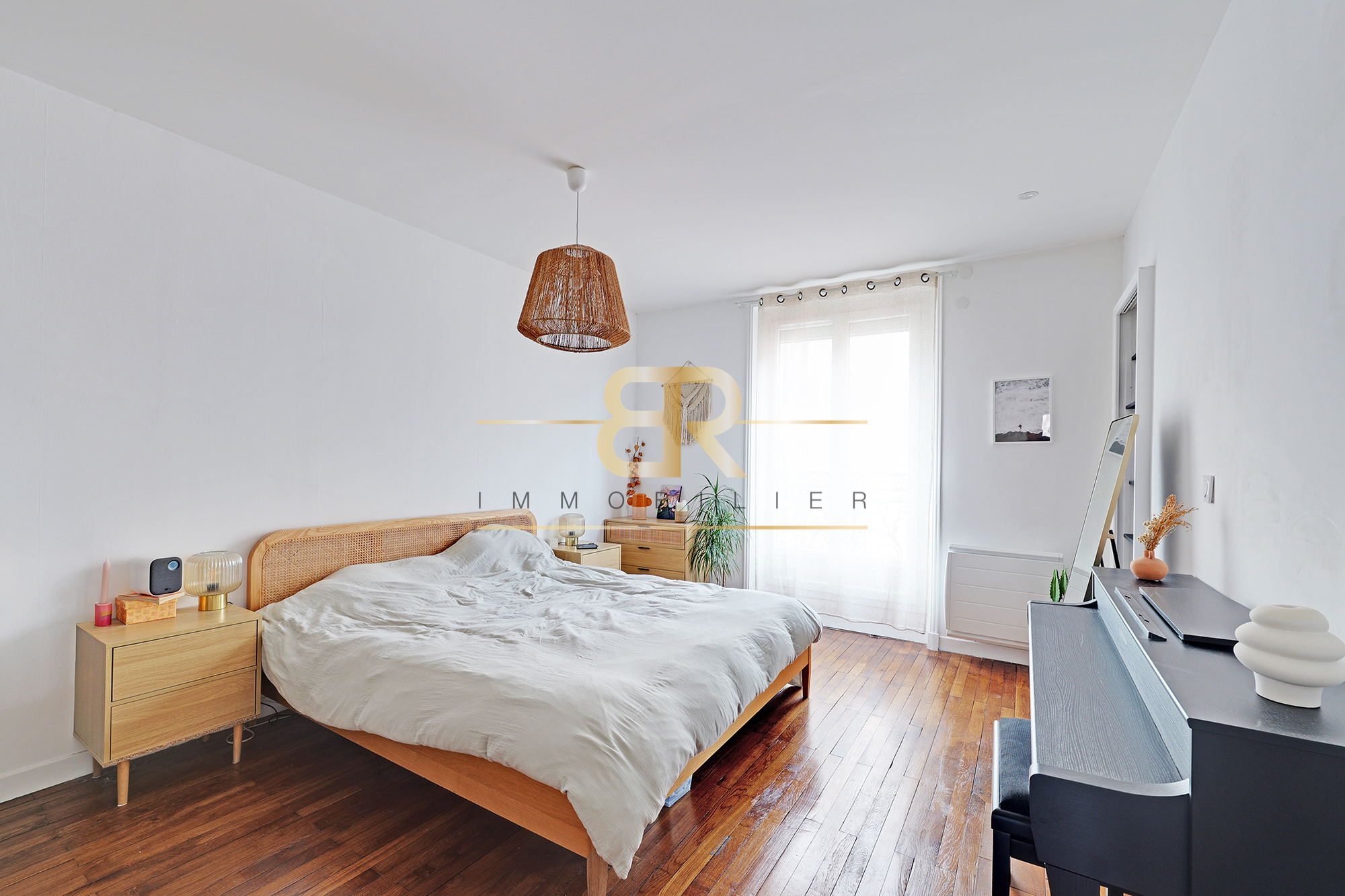 D’une superficie de 68,65 m², cet appartement traversant Est/Ouest offre une belle luminosité sans vis-à-vis direct. En excellent état, il conserve le charme de l’ancien avec parquet d’époque, tomettes et cheminée, et comprend une pièce de vie avec cuisine ouverte équipée, deux grandes chambres, une salle de bain avec doubles vasques et WC, ainsi qu’un espace de rangement à l’entrée.