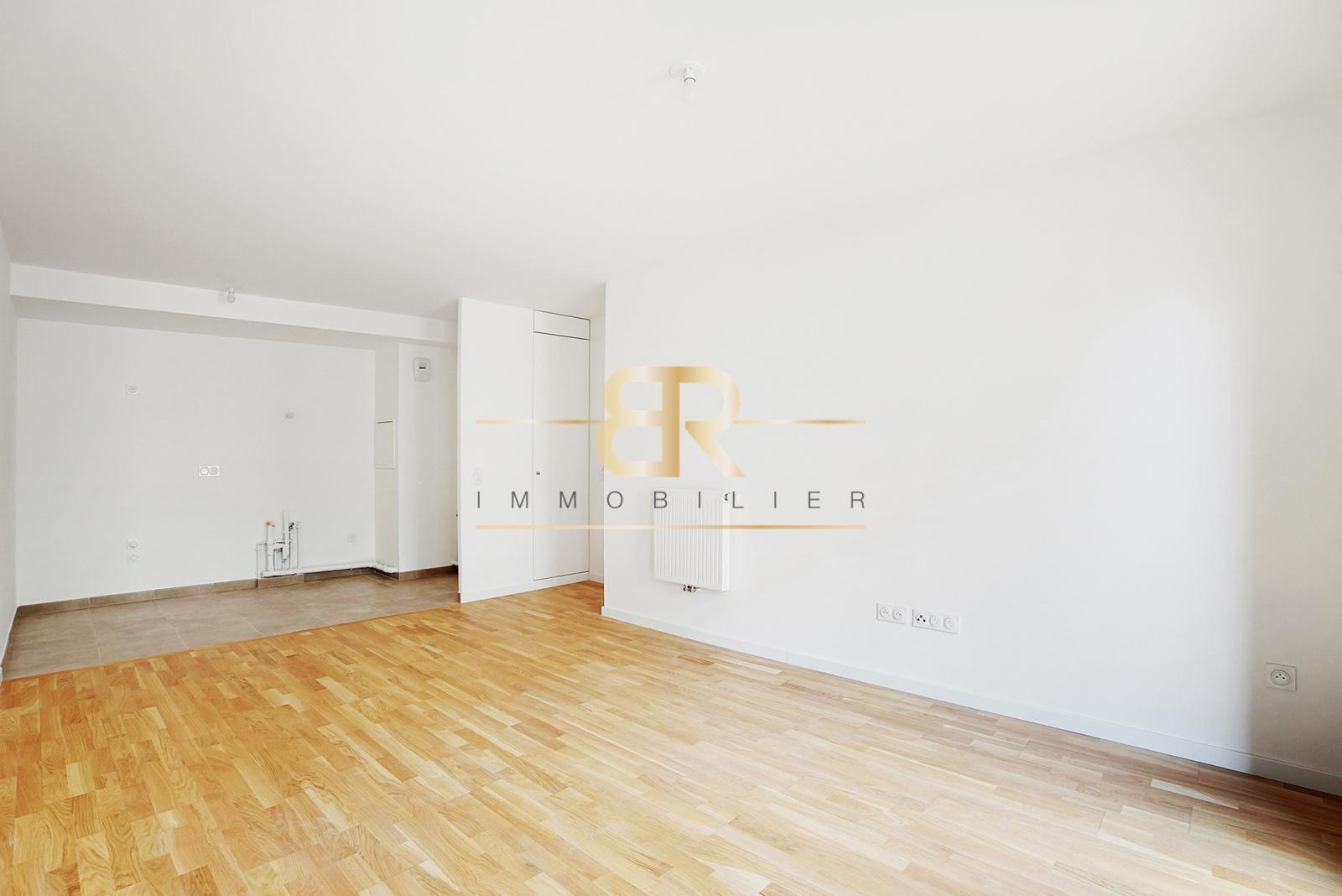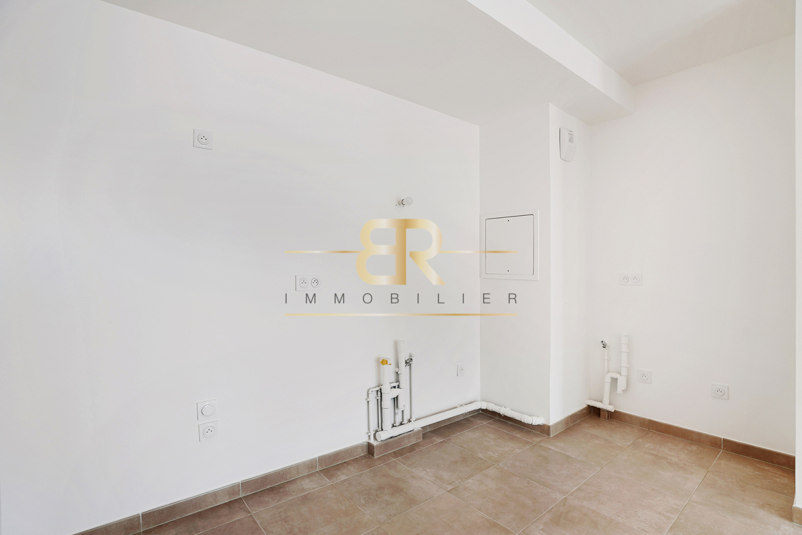Une cuisine ouverte (non aménagée) donnant sur un séjour lumineux, exposé sud-ouest, grâce à de grandes baies vitrées,