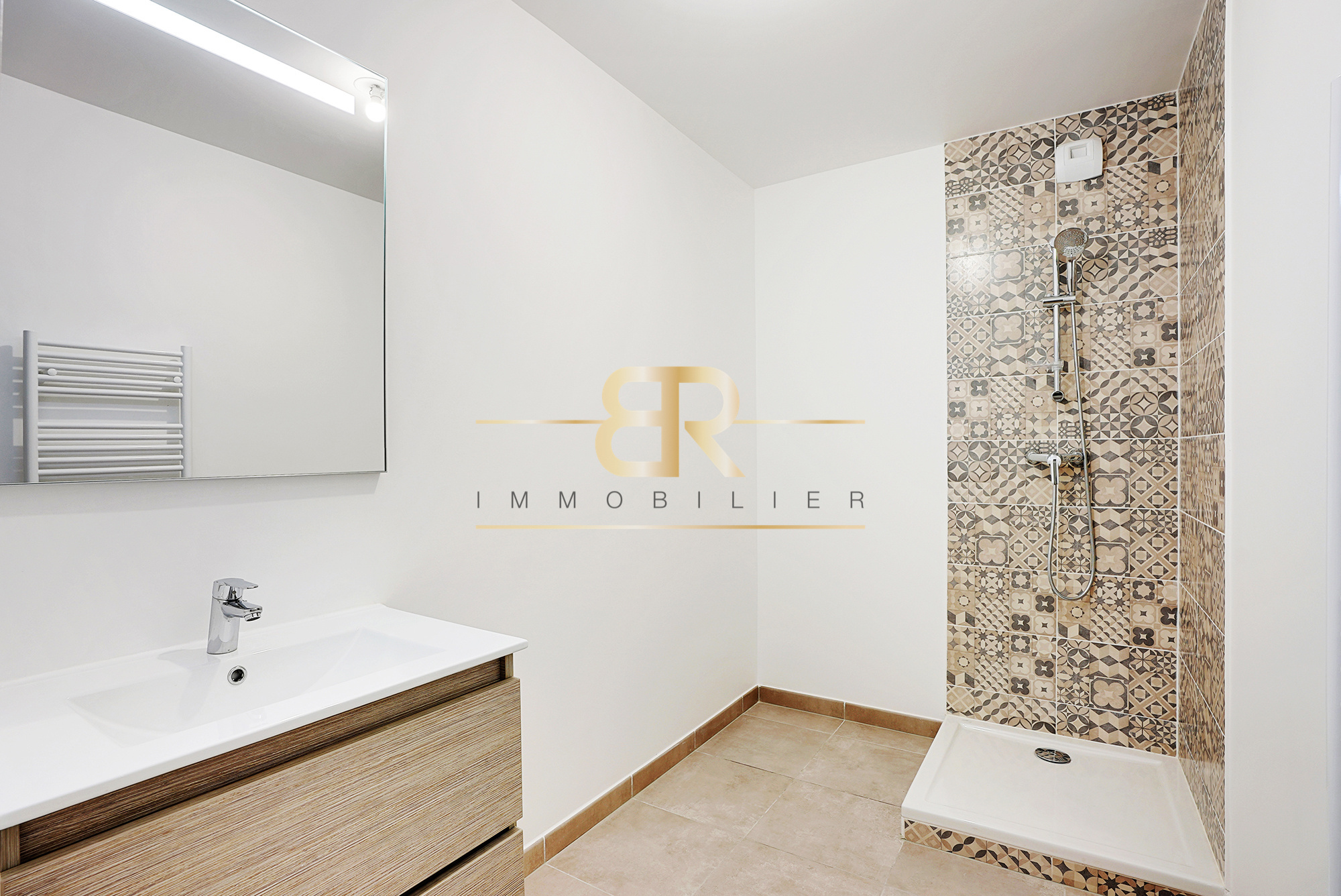 Une spacieuse salle d’eau avec douche à l’italienne.