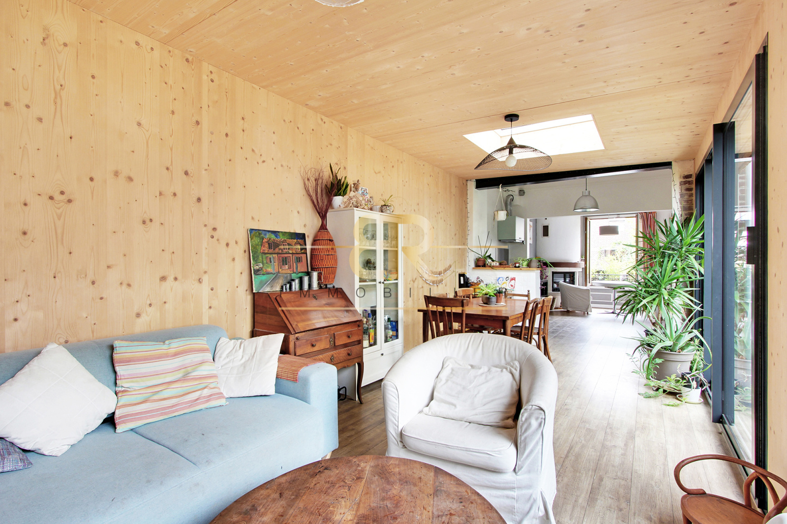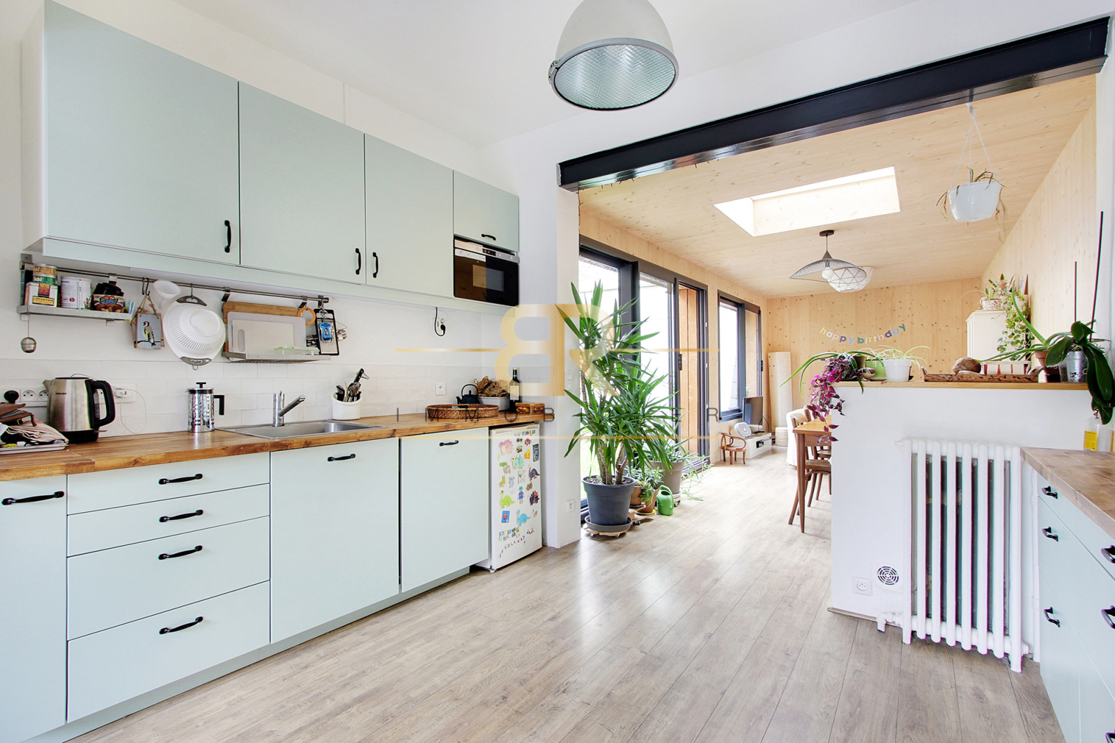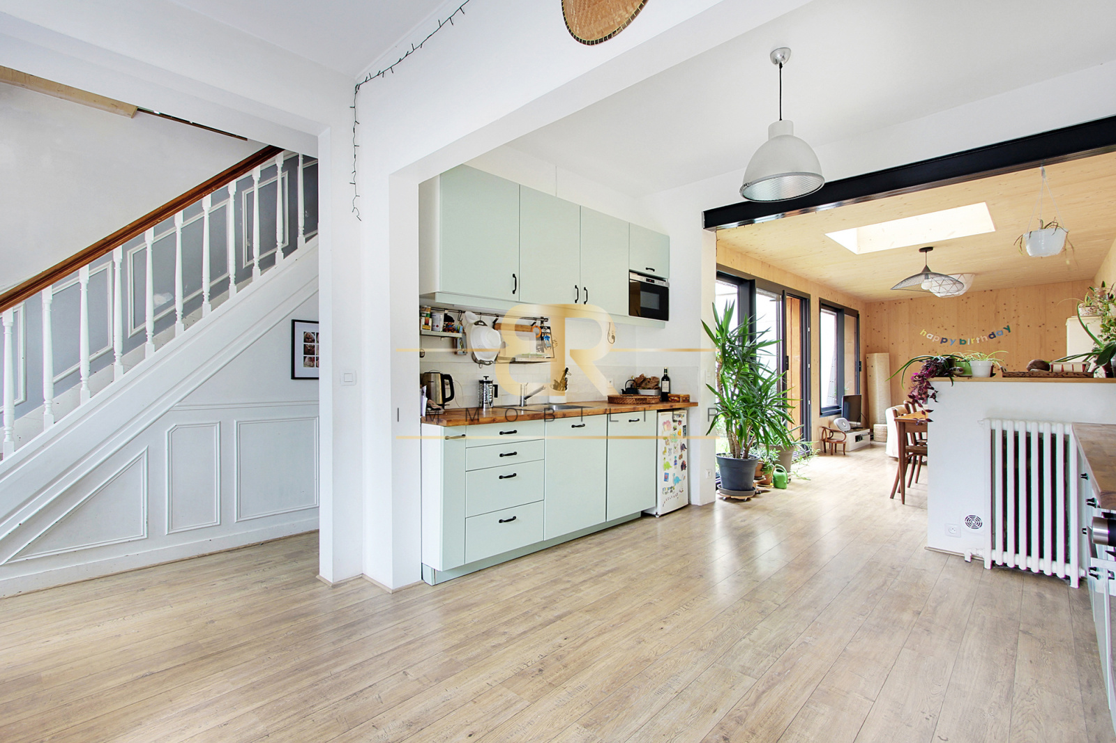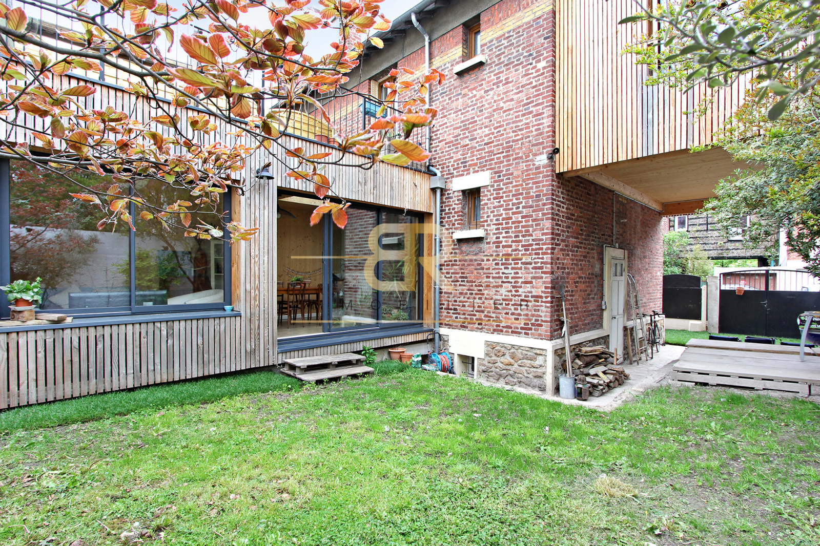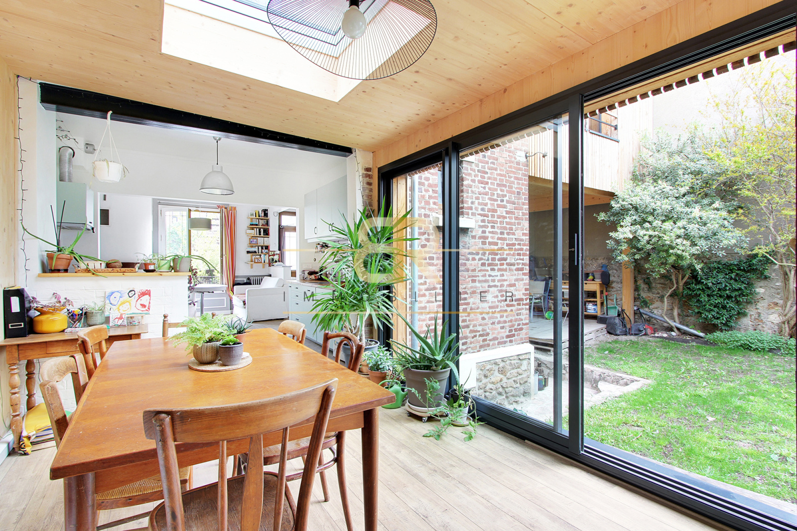 Noisy le Sec. A 14 minutes à pied du RER E et à 5 minutes du Centre ville. Proche de tous commerces, Écoles et crèche. COUP DE COEUR GARANTIT pour cette MAISON FAMILIALE de 118 M2 rénovée récemment avec 2 extensions en bois avec une isolation en fibre végétale ( 40 M2 supplémentaires par rapport au bâti d'origine). Sa façade 1930 toute en BRIQUE est pleine de CHARME, on entre sur un SALON avec un INSERT BOIS, en enfilade on trouve la CUISINE, elle même OUVERTE sur la GRANDE SALLE À MANGER ou SALON DE 21,6 M2 (EXTENSION 1). Cette pièce de vie LUMINEUSE grâce à des grandes baies vitrées donne sur le JARDIN de 40,5 m2 orienté SUD. L'escalier mène à l'étage avec 4 chambres ( dont 1 extension 2) 1 wc et une SALLE de BAINS. Une belle TERRASSE en bois (au dessus de l'extension 1) donne sur une des chambres. Au sous sol, UNE BUANDERIE ET UN BUREAU. Une PLACE DE PARKING, un jardinet et une possibilite de TERRASSE ABRITÉE de 9 m2 complètent ce bien d'exception ! A consulter le plan PARFAIT à la suite des photos. A visiter SANS TARDER.