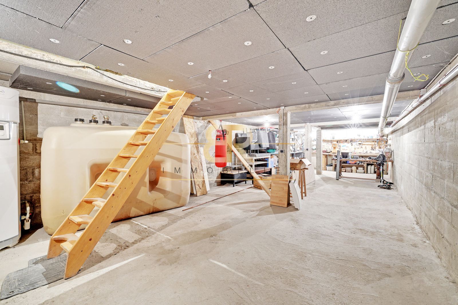 Le sous-sol, non aménagé mais disposant d’une cuisine, peut être transformé en espace de co-living, bureau ou salle polyvalente.