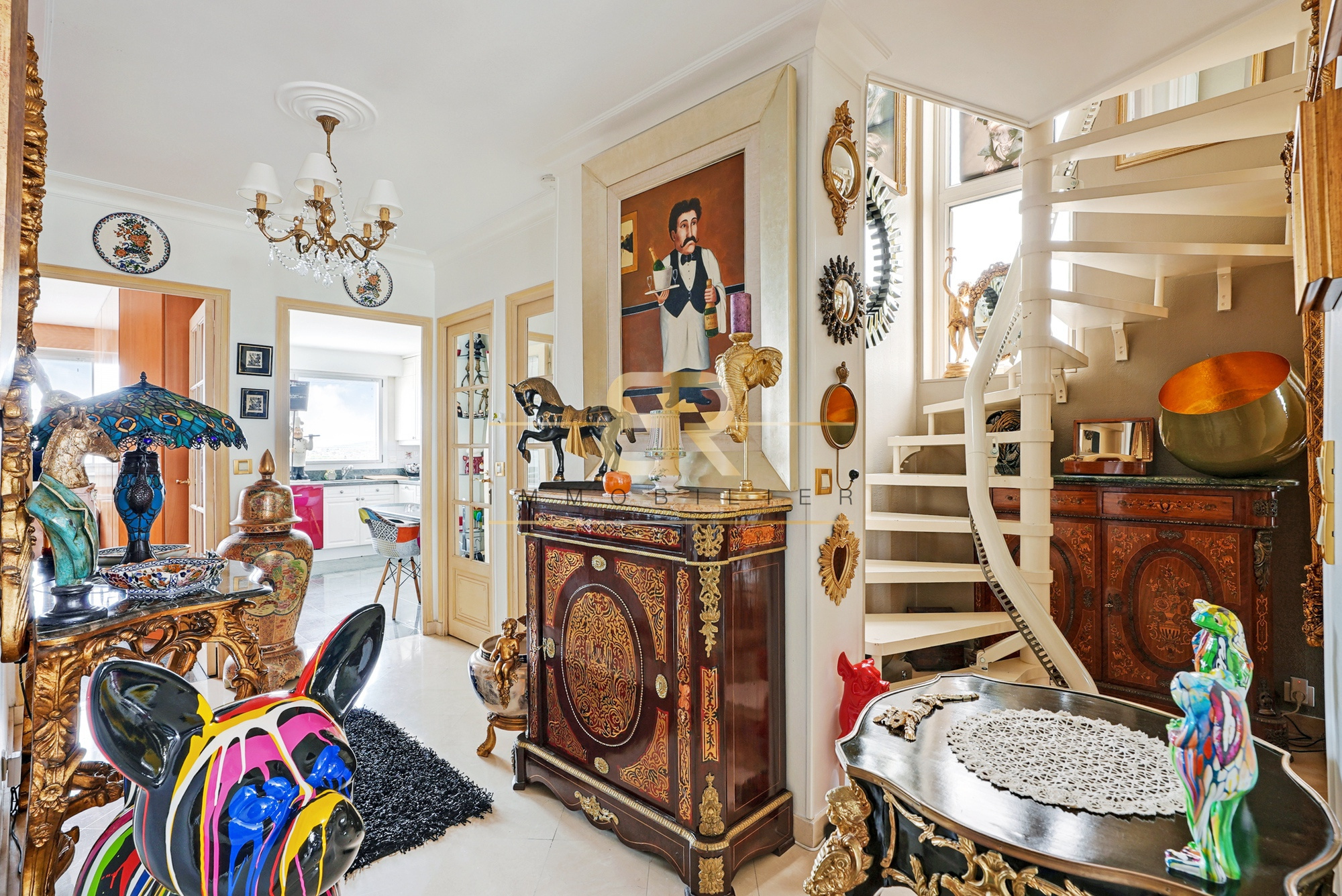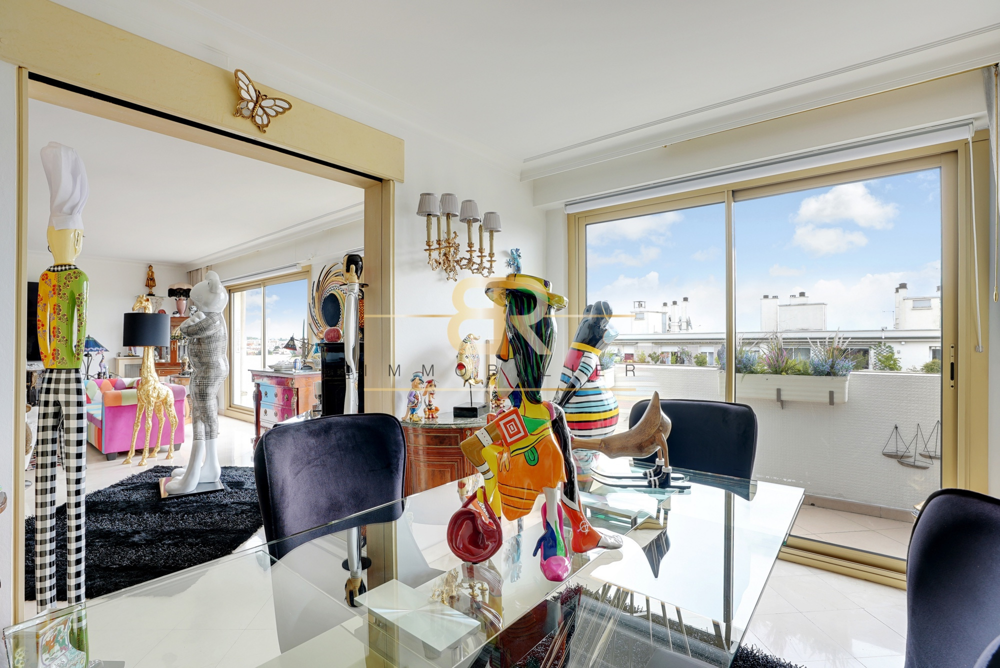 Un magnifique duplex de 155 m² Carrez avec 40 m² d'espaces extérieurs, situé aux 11 ème et 12 ème étages (dernier niveau) d’un immeuble sécurisé et entretenu avec soin (gardien sur place – construction 1975).