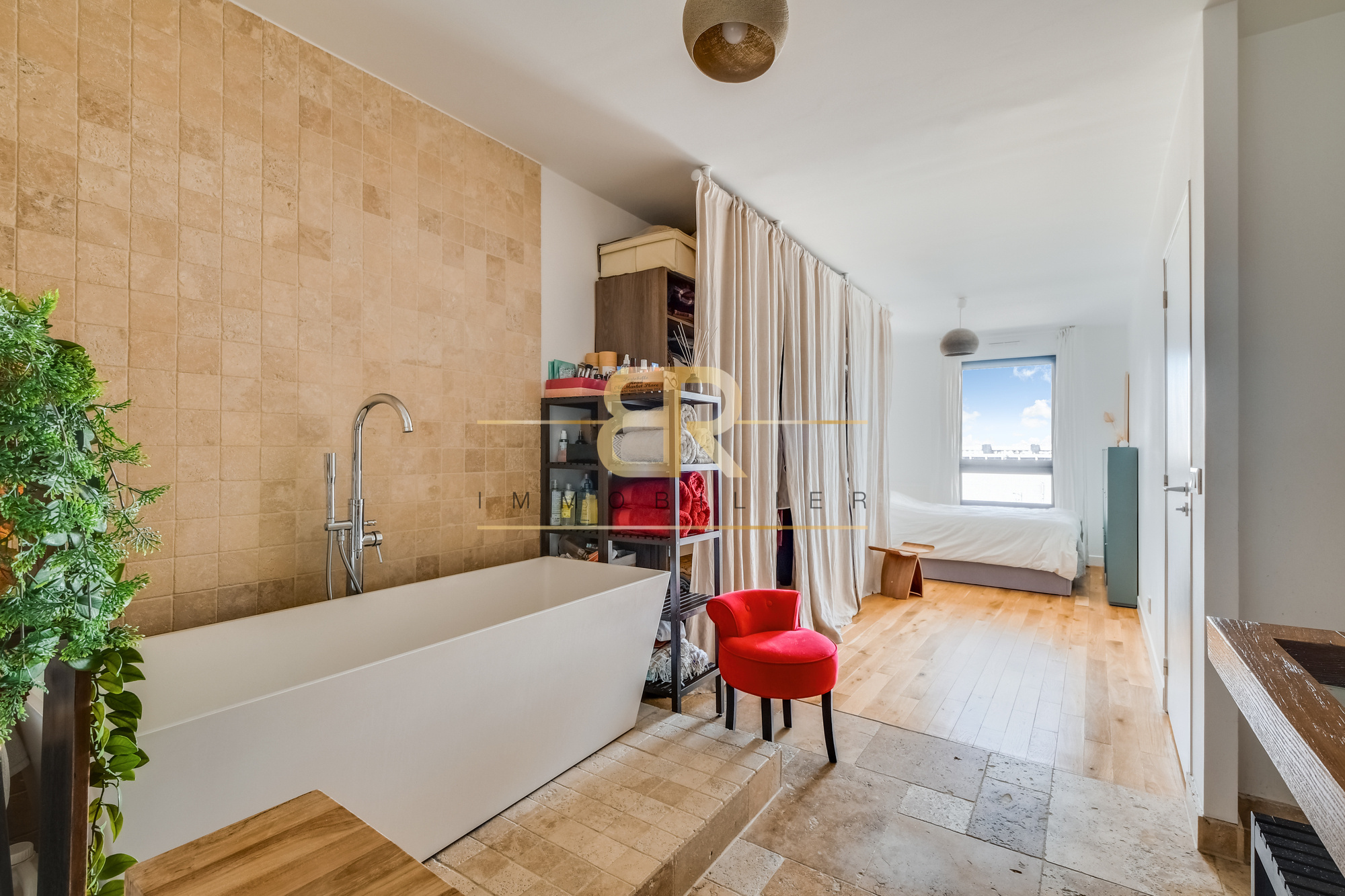 Il se compose d’un SPACIEUX séjour avec une cuisine ouverte entièrement ÉQUIPÉE, donnant sur une TERRASSE de 6 m², ainsi que d’un WC.
