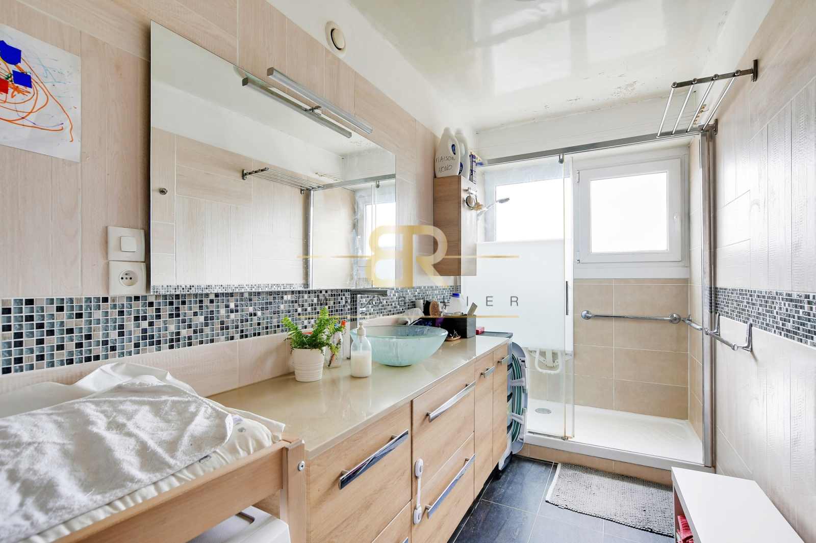• Une salle de bain moderne avec douche à l’italienne,