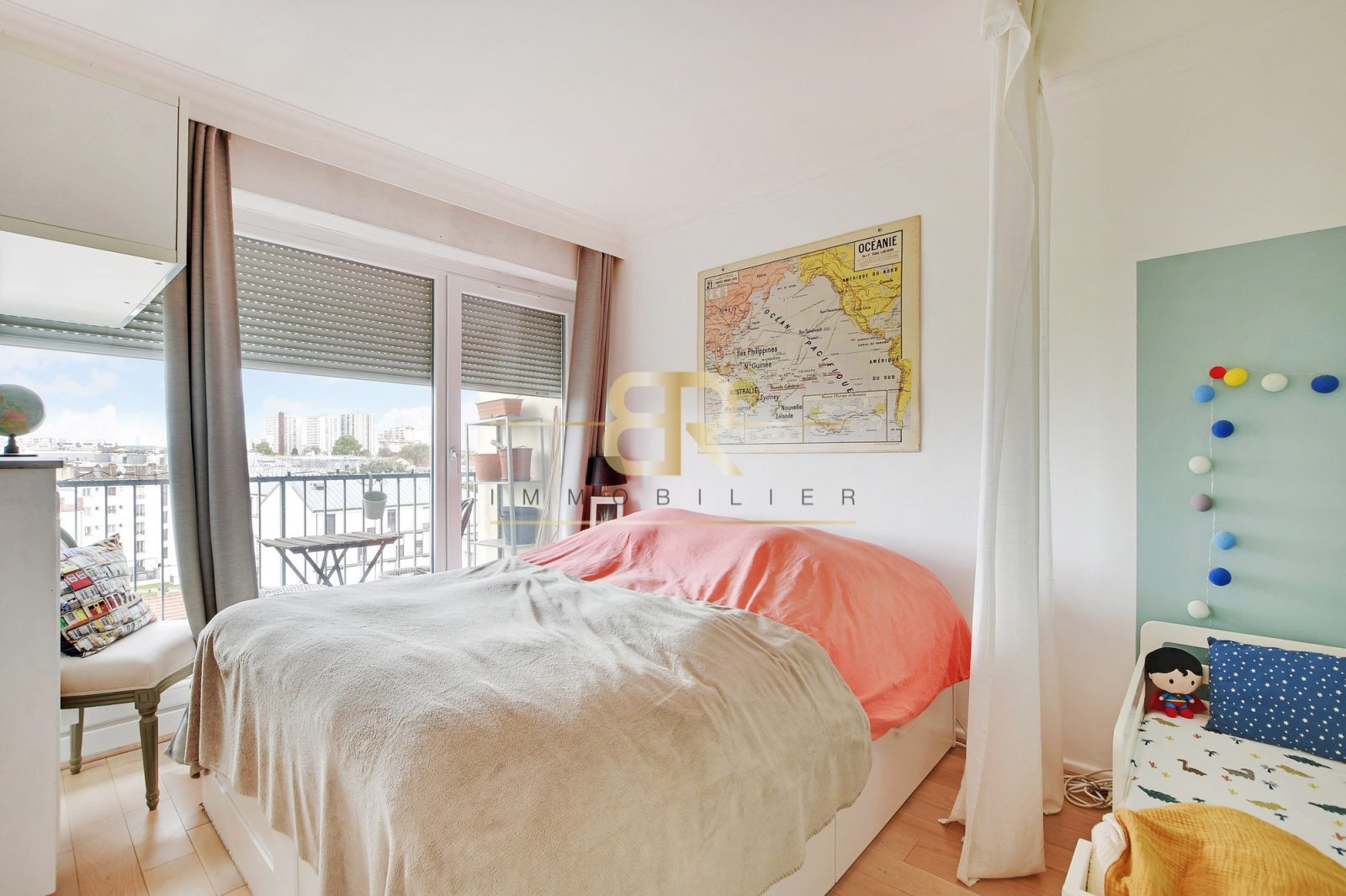 • Un séjour lumineux avec grande baie vitrée, donnant sur un balcon de 7,15 m² partagé avec la chambre,
