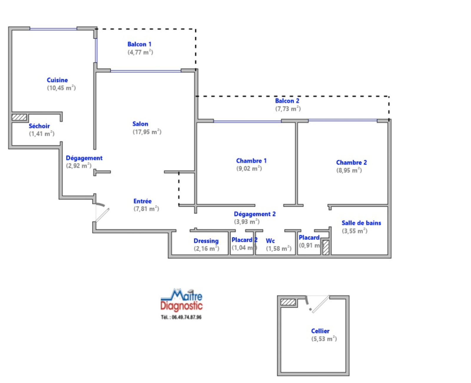 Rangements supplémentaires : Sur le même palier, un cellier de 5,53 m² est à votre disposition, offrant un espace de rangement supplémentaire appréciable.