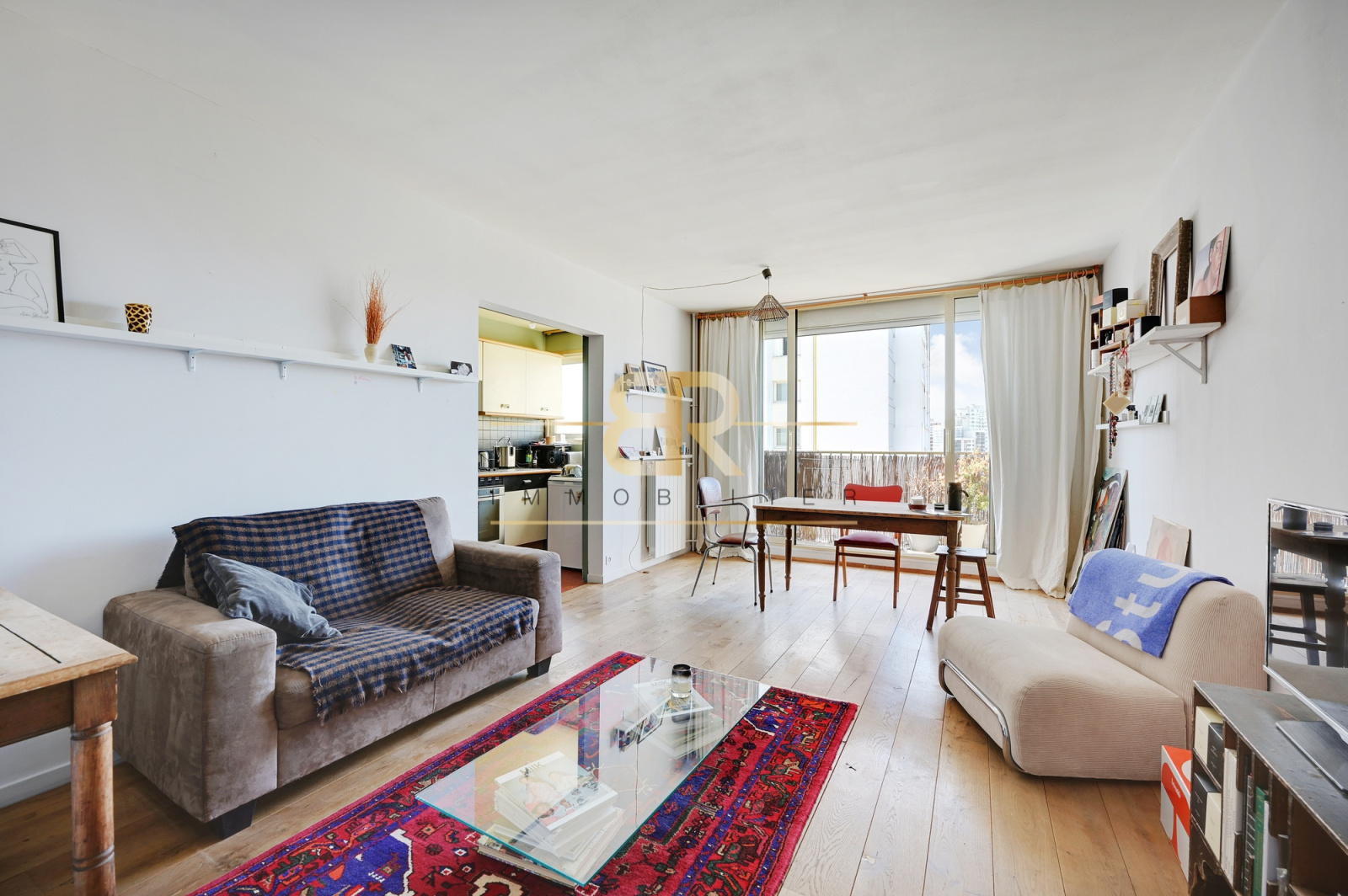 L'appartement bénéficie d'un salon lumineux qui s'ouvre sur un charmant balcon, idéal pour savourer un moment de détente matinal ou pour décompresser après une longue journée. La cuisine semi-ouverte est entièrement équipée, offrant un espace de préparation culinaire fonctionnel.