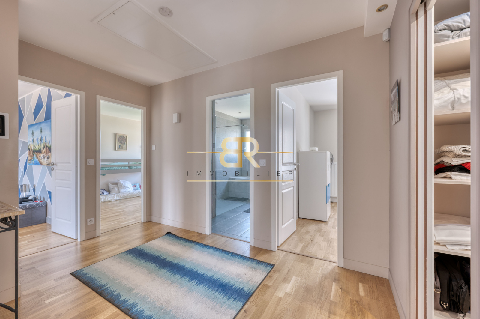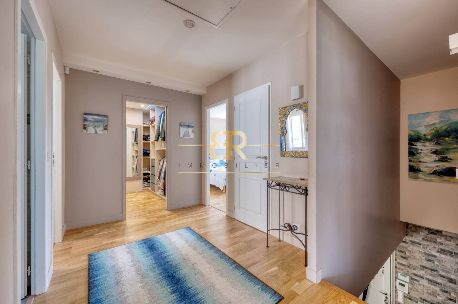 À l’étage, le palier avec sa distribution EN ÉTOILE dessert 4 belles chambres SPACIEUSES et LUMINEUSES, dont une SUITE PARENTALE avec sa salle d’eau attenante, une salle de bains avec douche à l'italienne et double vasque et un WC séparé. Une pièce DRESSING est également présente à ce niveau.