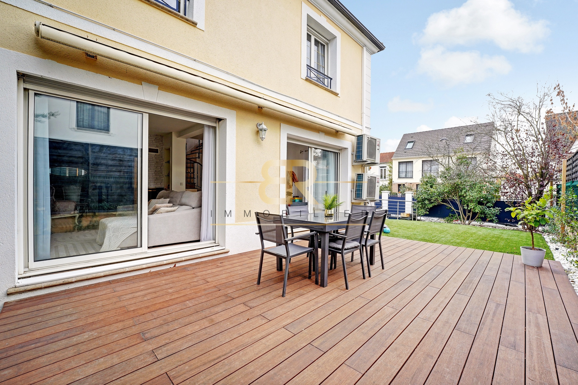COUP DE CŒUR ! Dans une RUE CALME de JOINVILLE-LE-PONT à 5 minutes à pied de NOMBREUX COMMERCES et ÉCOLES, le Cabinet BR immobilier vous propose cette GRANDE MAISON FAMILLIAL RÉCENTE (2002) en PARFAIT ÉTAT de 160m2 loi CARREZ (240m2 au sol) avec JARDIN, TERRASSES et BALCONS. Le REZ-DE-CHAUSSÉE se compose d'une ENTRÉE qui desserre sur la droite une MAGNIFIQUE CUISINE entièrement ÉQUIPÉE et aménagée autour d'un grand SOCLE EN MARBRE ROUGE servant de plan de travail, de table et d'évier. La cuisine est OUVERTE sur la SALLE À MANGER elle-même ouverte sur un IMMENSE SALON avec ESPACE BUREAU qui permet d'accéder à la SUPERBE TERRASSE de 30m2 par DEUX GRANDES BAIES VITRÉES en double vitrage. Ce rez-de-chaussée circulaire est d'une surface toatale de 80m2 et comporte une CHEMINÉE située entre la salon et la salle à manger. Dans l'entrée (avec WC séparés sur la gauche) se situe L'ESCALIER qui permet d'accèder au 1er ÉTAGE dont le palier mène aux TROIS CHAMBRES dont UNE SUITE PARENTALE avec un BEAU DRESSING, une SALLE DE BAIN/SALLE D'EAU avec baignoire jacouzzi. WC séparés dans le couloir de lal salle de bain. Au total;, 4 WC et 3 salles d'eau dans la maison construite sur un terrain de 250m2. Au SOUS-SOL, deux espaces BUANDERIE, un ESPACE ATELIER/BRICOLAGE, ainsi qu'un STUDIO INDÉPENDANT de 24m2 aménagé en 2024 avec CUISINE ÉQUIPÉE et SALLE D'EAU avec WC. Ravallement et nouveau toit réalisés il y a moins de trois ans. TERRASSE NEUVE en BOIS. Systême de chauffage ultra efficace par une POMPE CHALEUR NEUVE qui alimente aussi la climatisaition. Parquet au 1er étage et carrelages au RDC. Proche COMMERCES, à 15 minutes à PIED du RER A JOINVILLE-LE-PONT. Une place de PARKING à l'intérieur et UNE AUTRE sur le bateau devant le PORTAIL. Idéal grande famille, À VISITER SANS TARDER.