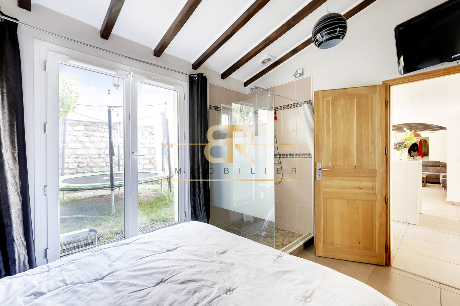 Découvrons d'abord un véritable écrin de paradis en descendant les escaliers, en arrivant sur une grande TERRASSE et un JARDIN qui sont ensoleillés une bonne partie de la journée. Ensuite nous entrons directement dans une cuisine ouverte totalement équipée et fonctionnelle. Nous poursuivrons dans un salon où vous pourrez passer vos hivers au chaud avec le poele à bois. Ce séjour vous offre beaucoup de cachet avec des poutres apparentes. Une chambre parentale avec un DRESSING et sa douche italienne, un WC indépendant avec lave main ainsi qu'un espace buanderie complètent le niveau du rez de chaussée.